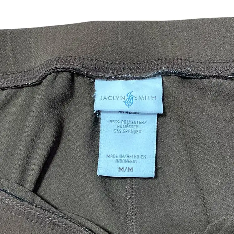 Brown comfortable elastic Jaclyn Smith medium pants. There is a snag as shown in the photos on the front right knee pants leg.