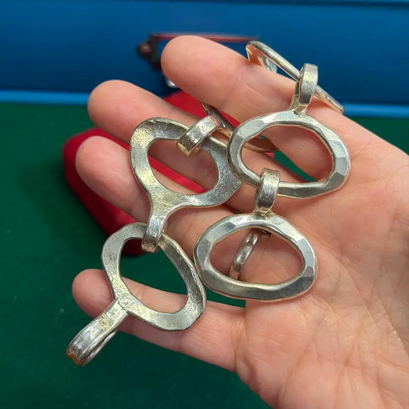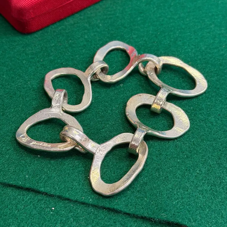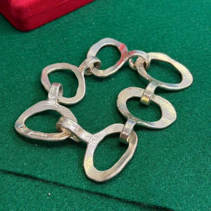 This incredible Danish bracelet is in good condition and about7-1/2 inches long. The designer, Jacob Hull, was a Danish sculptor and jewelry designer. He was active during the 1970s and did work for Buch & Diechmann as well as under his own brand.