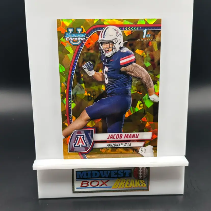Jacob Manu 1st 36/50 Gold 2024 Bowman’s Best University University Chrome Sapphire Arizona MBBCRD