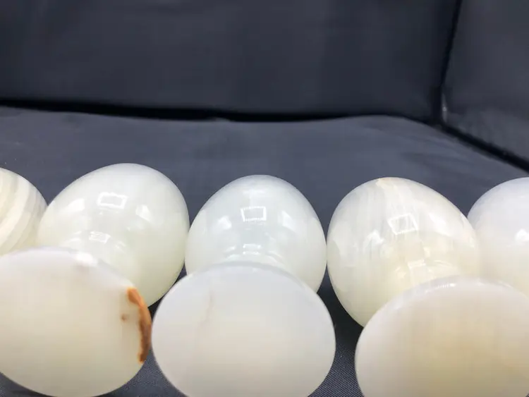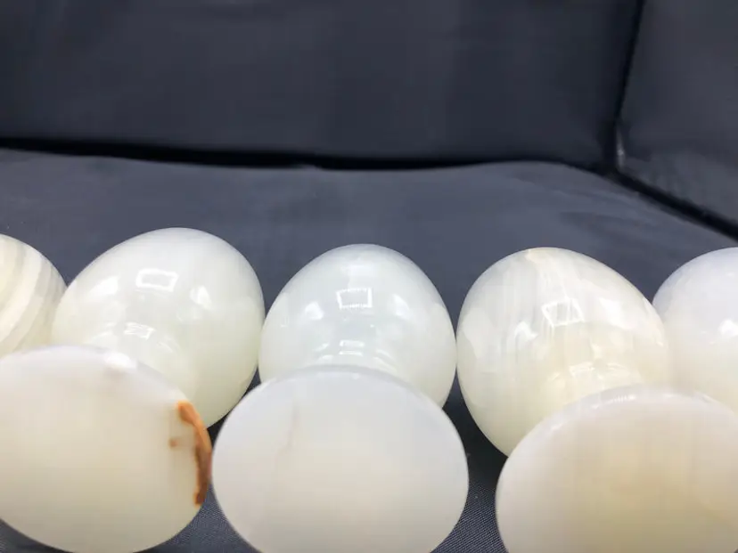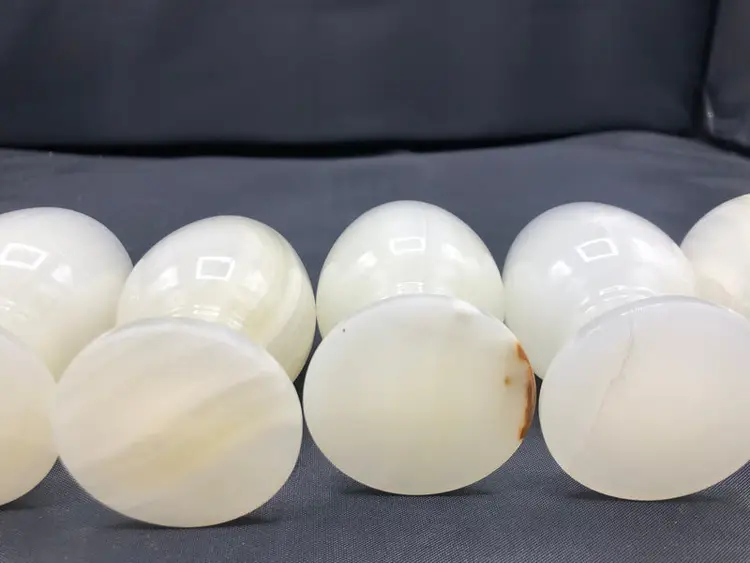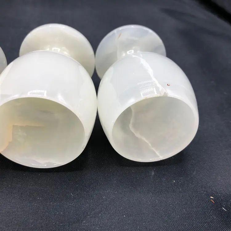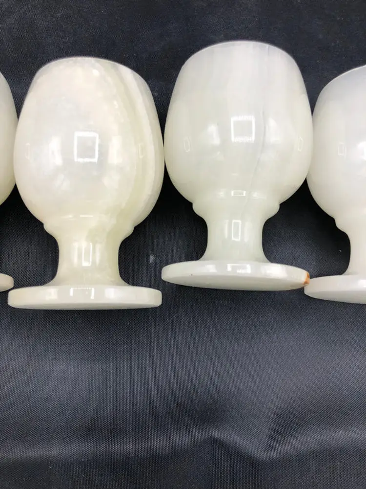 This striking set of six jade goblets commands attention as a distinctive tableware collection. Each piece maintains excellent condition and arrives in its original packaging, making it an ideal choice for collectors or those seeking refined entertaining pieces. Compact at 3 x 2 inches, these goblets blend elegant proportions with the natural beauty of jade, offering both functional utility and aesthetic appeal for discerning households.