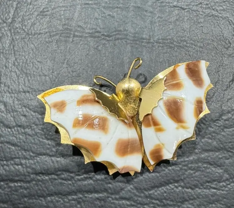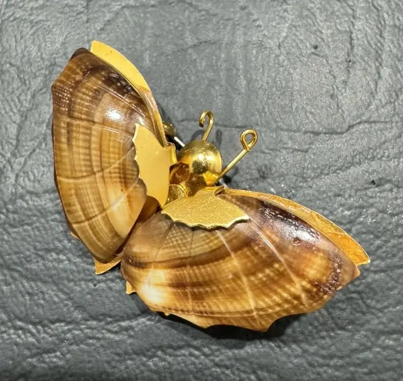 This exquisite brooch set (2) pin from the Jade Dynasty Collection features a stunning butterfly set with ridged shell wings. Crafted with intricate details, this vintage piece is a must-have for any jewelry enthusiast. The brooch is made of high-quality materials, including shell and base metal, which ensure its durability and longevity.