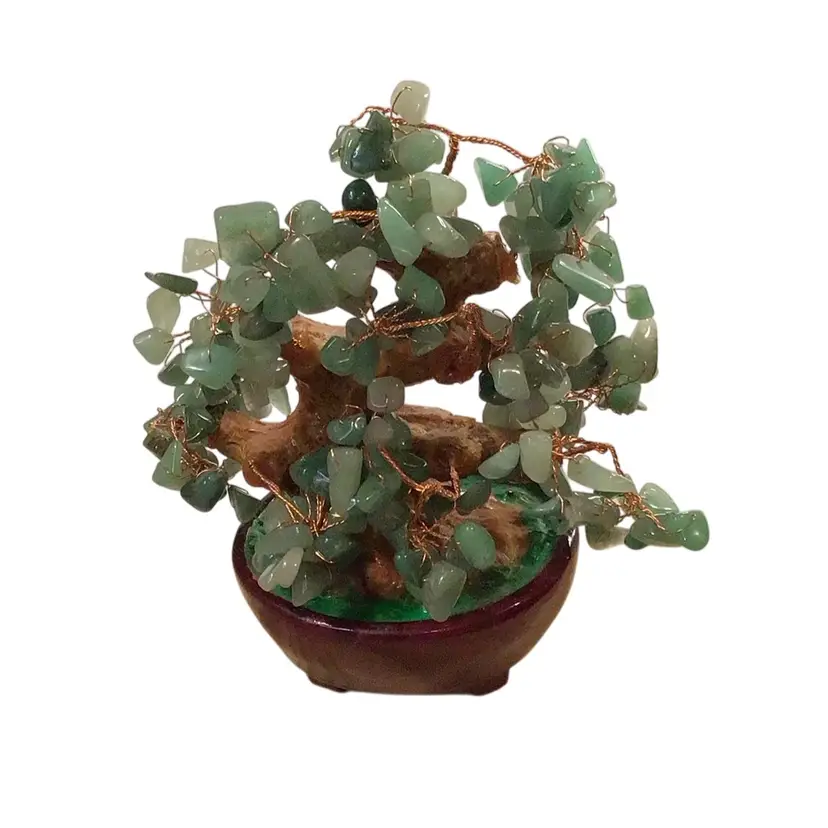 Does test jadeite on the presidium tester. Approximately 6 inches tall can reposition stones on copper wire. Set on resin tree and soil and set in lacquered base wooden bowl