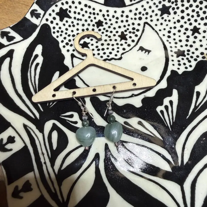 Handmade jade heart, seraphinite bead, sterling silver beaded earrings
