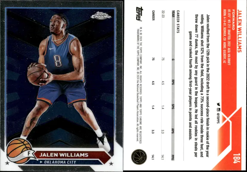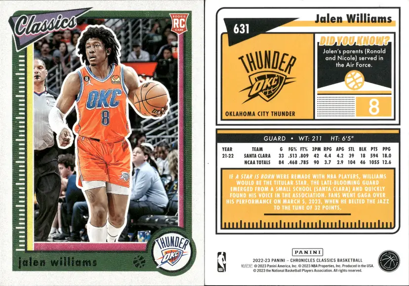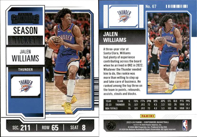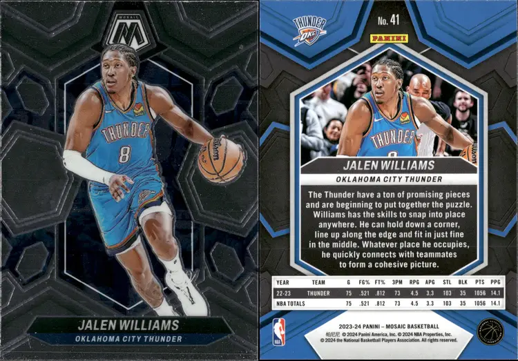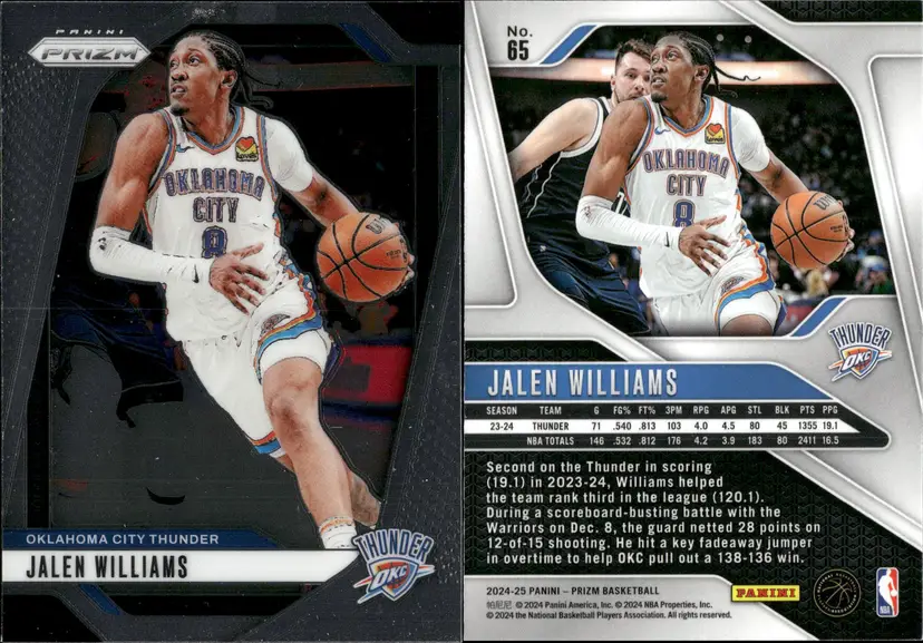 Jalen Williams Rookie Lot of 15 Basketball Cards OKC This lot contains 15 Basketball Cards of World Champ Jalen Williams