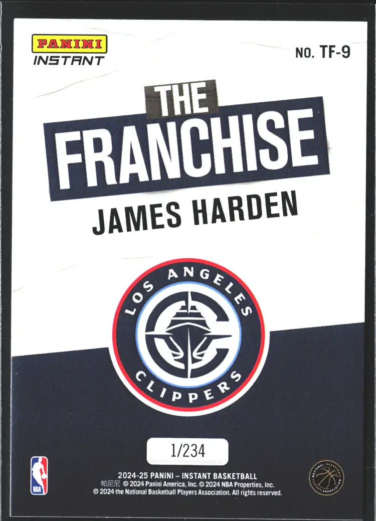 1st time buyer? Get $5 Off with code DISTRICT5 at checkout! Card as shown. All cards $20 and under ship PWE via lettertrackpro [https://www.letter-track.com/registerap.asp?AFID=8757] Type: Sports Trading Card Player/Athlete: James Harden Sport: Basketball Manufacturer: Panini League: National Basketball Association (NBA) Set: 2024-25 Panini Instant NBA Features: Limited Edition, Short Print, Exclusive Season: 2024-25 Autographed: No Card Condition: Near Mint or Better Material: Card Stock Original/Licensed Reprint: Original Event/Tournament: NBA Finals Vintage: No Graded: No Country/Region of Manufacture: United States Team: Los Angeles Clippers
