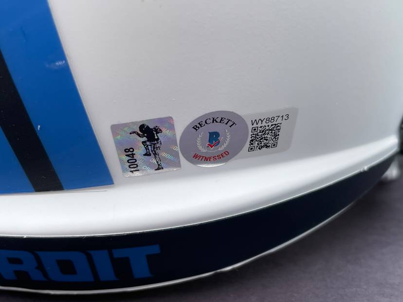 Jameson Williams Autographed Detroit Lions F/S Speed Helmet-Beckett W Hologram. Certificate issued of authenticity. Back of helmet slight white mark barely noticeable. Wanted to be honest