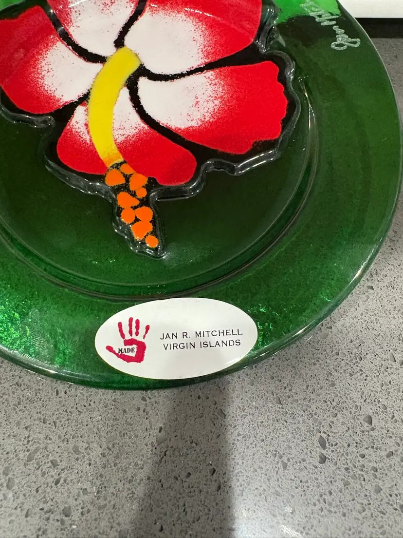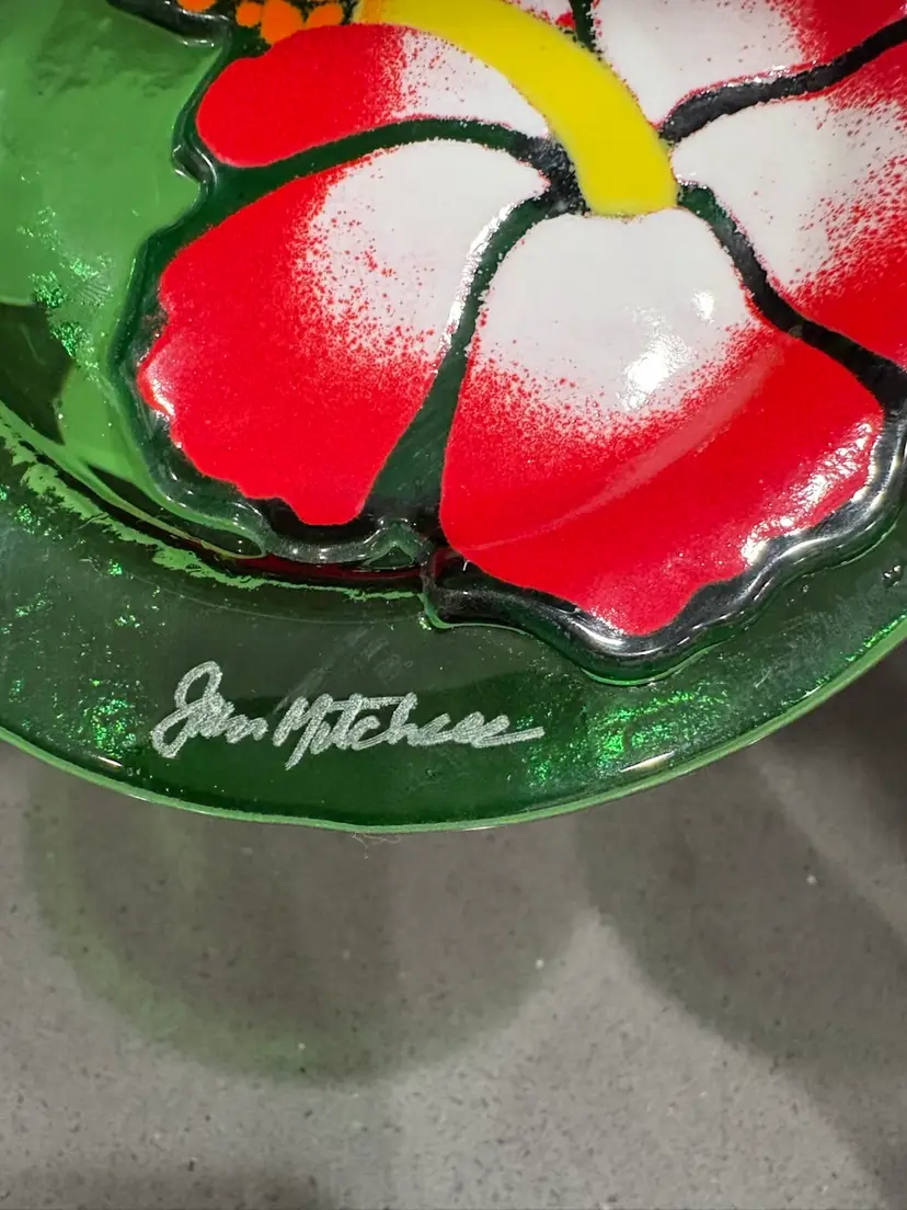 Jan R Michell Fused Art Hibiscus Flower Dish