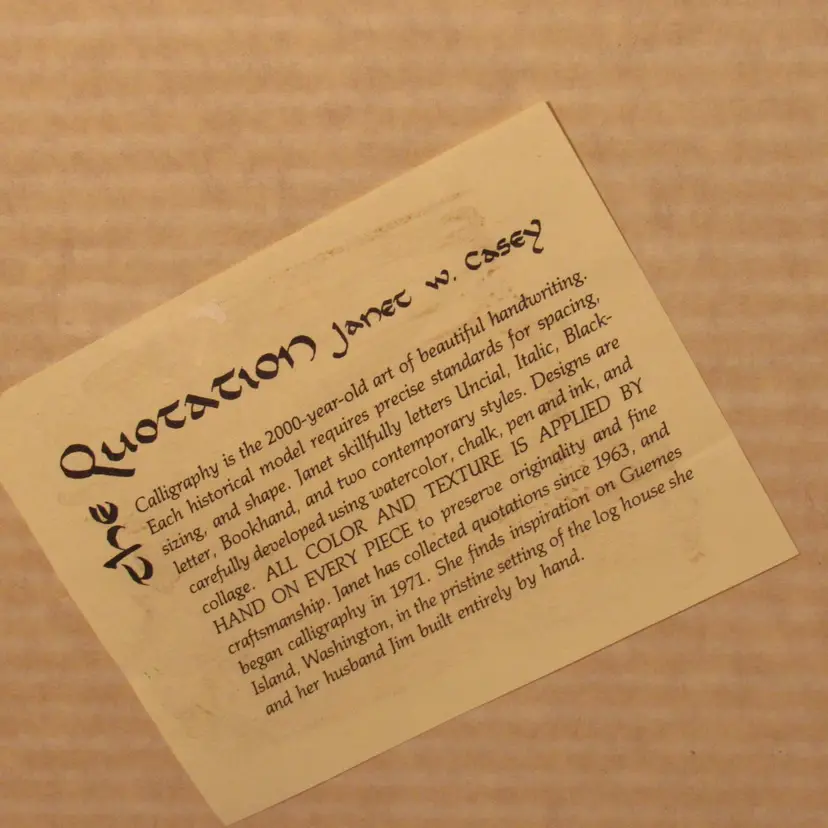 *Pre-owned - Vintage Collectible - Circa @ 1981 - Signed and Dated *Measurements: Frame: L 14 3/4" x W 11 7/8" x D 3/4" *Print: L 10 3/4" x W 7 3/4" *Handwritten Calligraphy - Excellent Condition