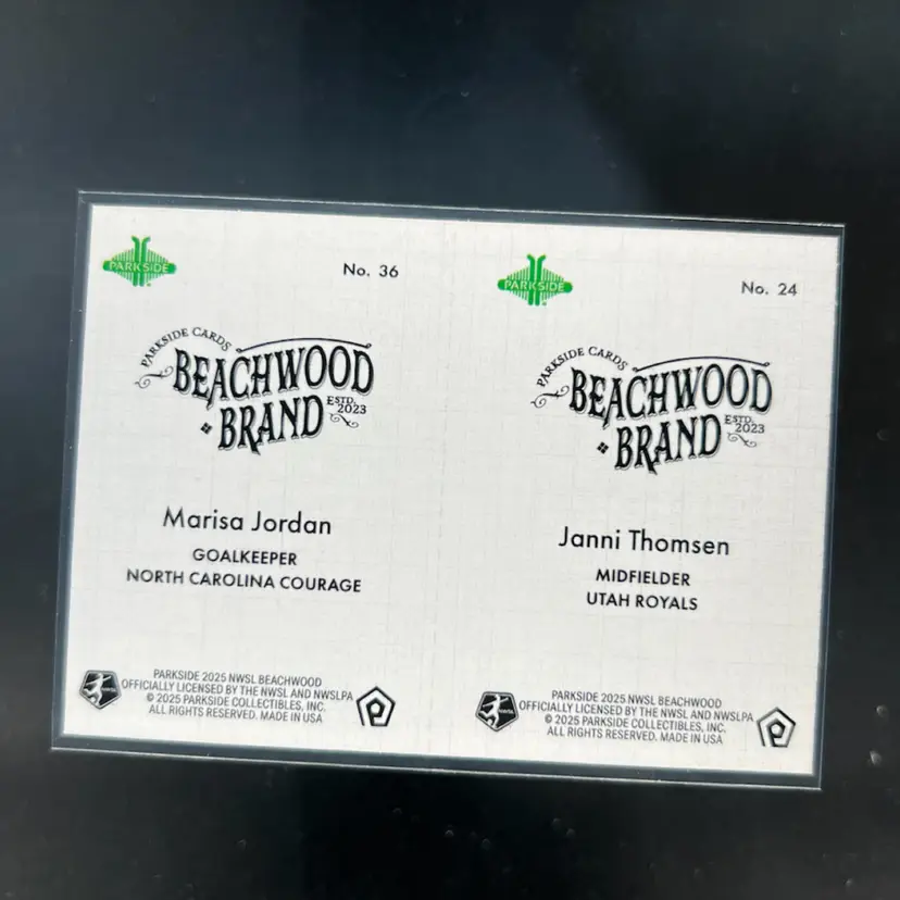 Janni Thomsen & Marisa Jordan 2025 Parkside Beachwood Brand Beachwood Squared Soccer Card