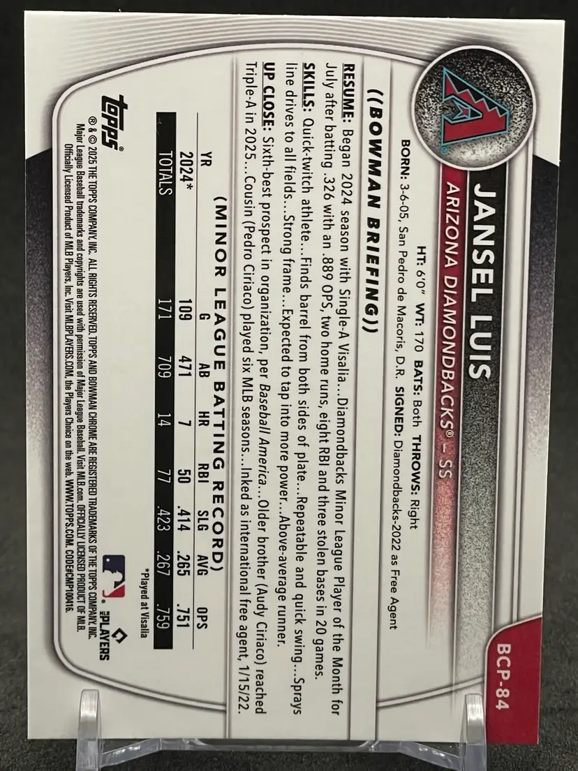 Item Description: Jansel Luis 2025 Bowman Chrome Bowman 1st Reptilian Refractor #BCP-84