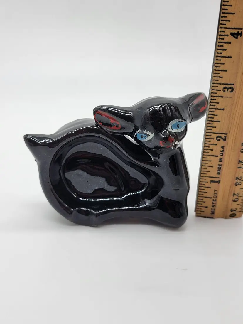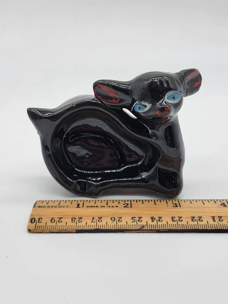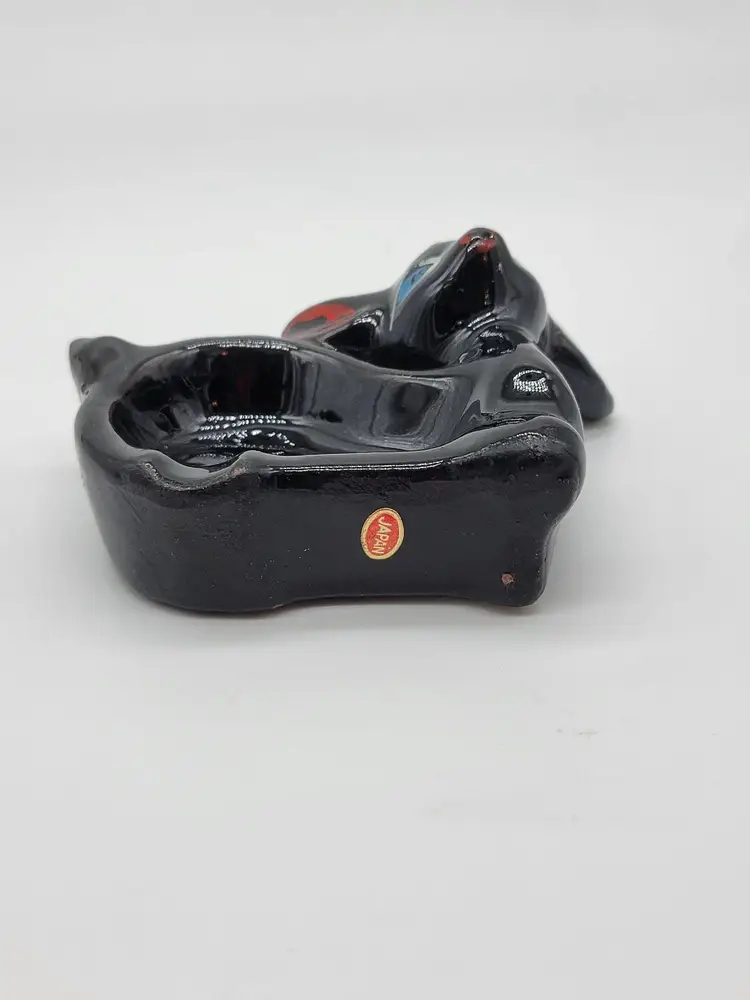 This Japan Shafford redware deer ashtray/trinket dish can either lie flat or stand on its side for display.