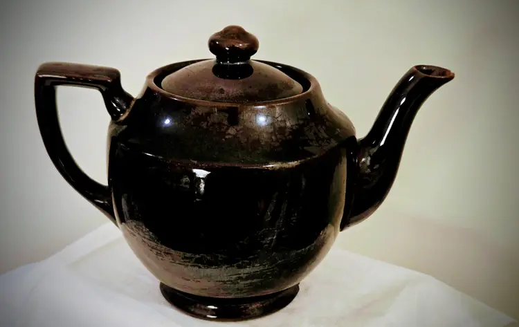This vintage teapot is a charming addition to any collection, featuring a rich brown ceramic finish with a glazed finish. Made in Japan, this medium-sized tea pot with a single compartment and lid exudes a classic 1970s style. Perfect for all occasions, this teapot is sure to add a touch of nostalgia to your kitchen or home decor.