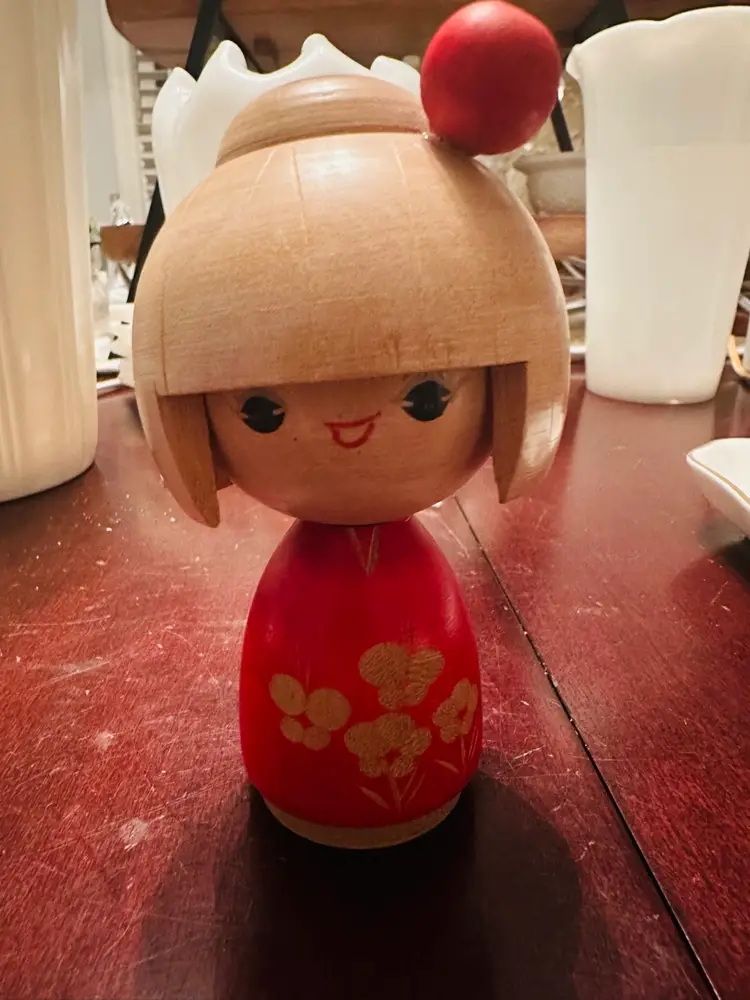 This Japanese 4" Kokeshi Wooden Doll features intricately carved floral designs, showcasing traditional Japanese culture and craftsmanship. Handmade in Japan, this unique doll is a beautiful representation of Japanese artistry and attention to detail. With its charming design and provenance, this Kokeshi doll is a lovely addition to any collection or as a decorative piece in a home setting.