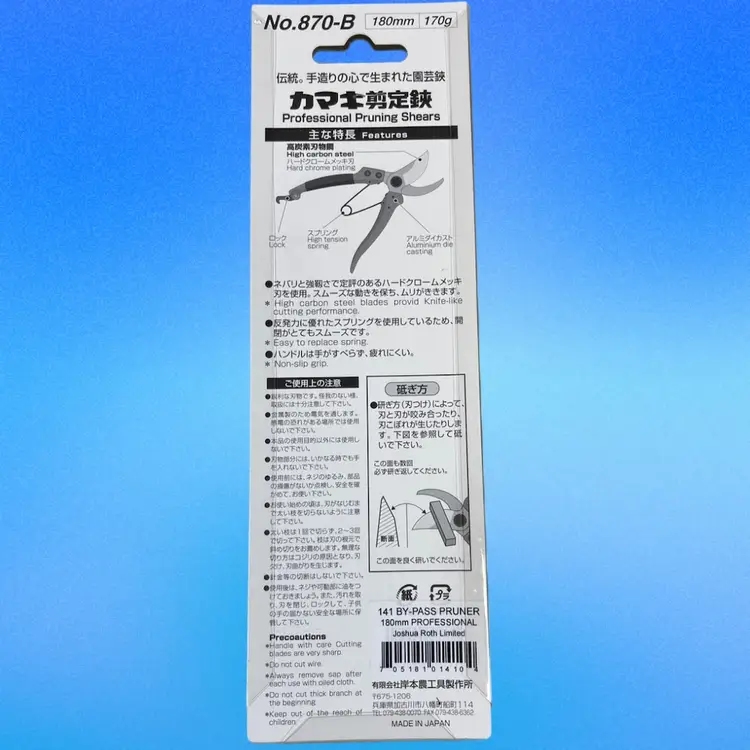 These Professional quality bypass pruners are made in Japan by Kamaki.