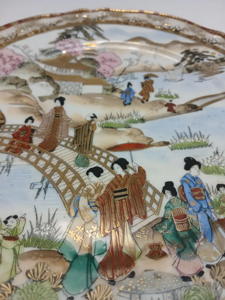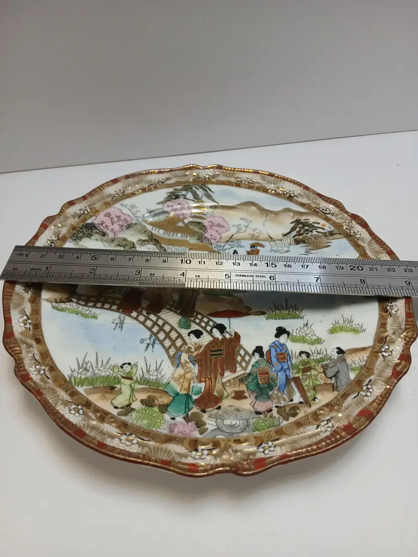 Beautiful Japanese hand painted plate. 9" in diameter. This plate is a part of an estate that was in storage for about 25 years, so there is some age to this piece.