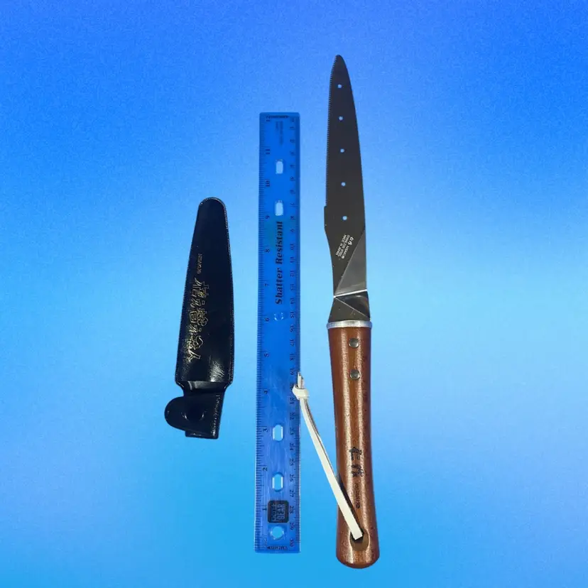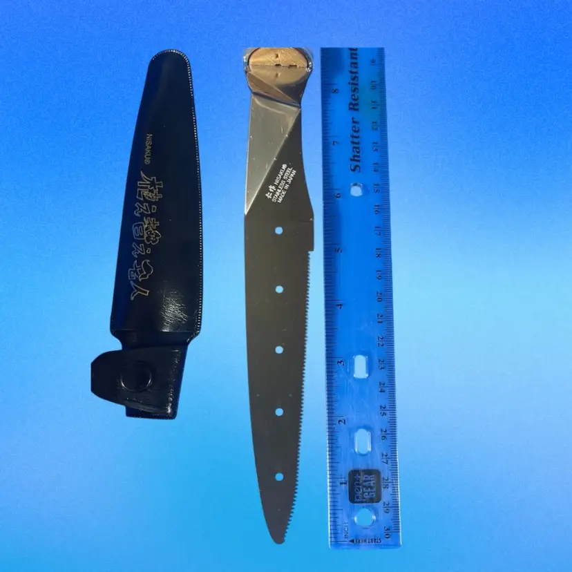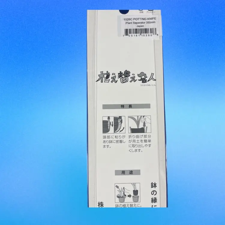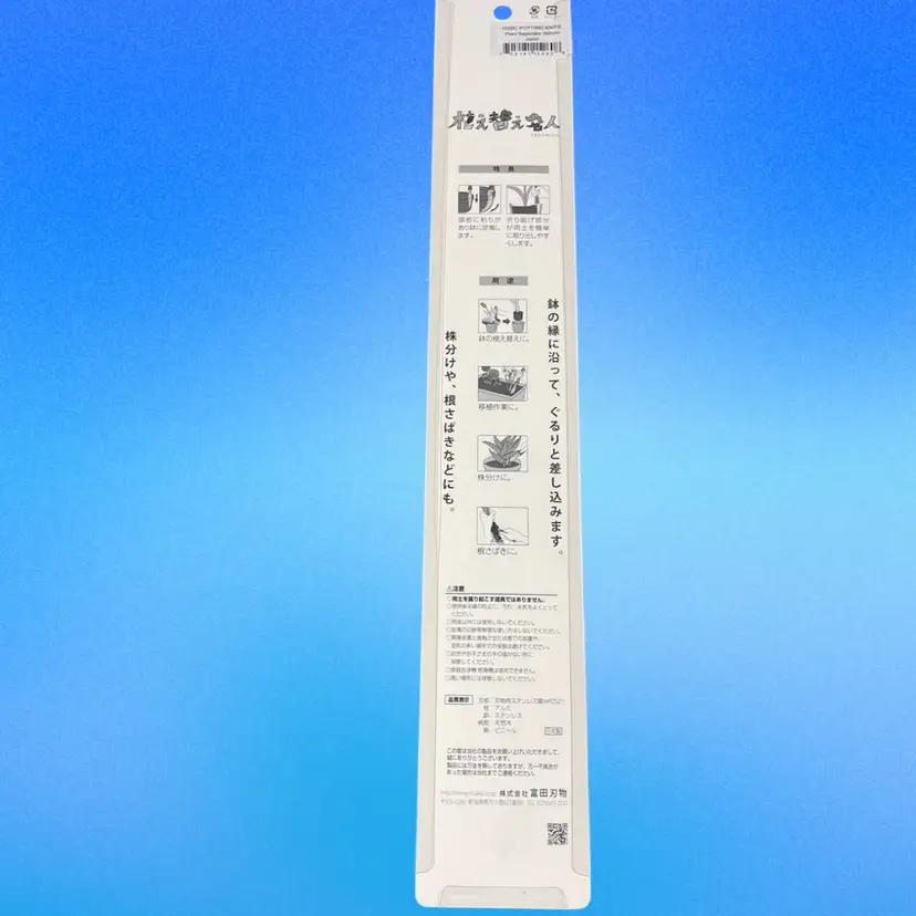 Premium Japanese stainless steel. Flexible knife to remove plants from pots/containers. The saw edge is approximately 5" long.