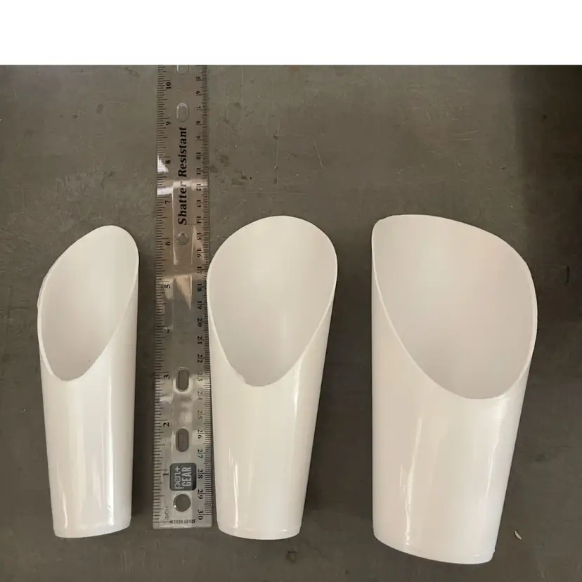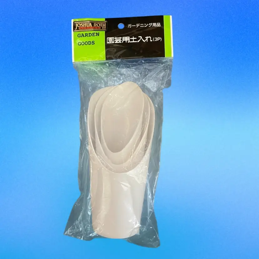 Set of three plastic scoops for soil. Made in Japan. Approximately 6-7”