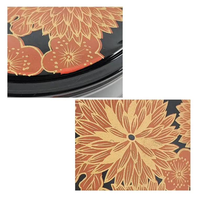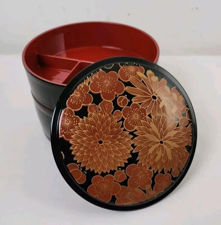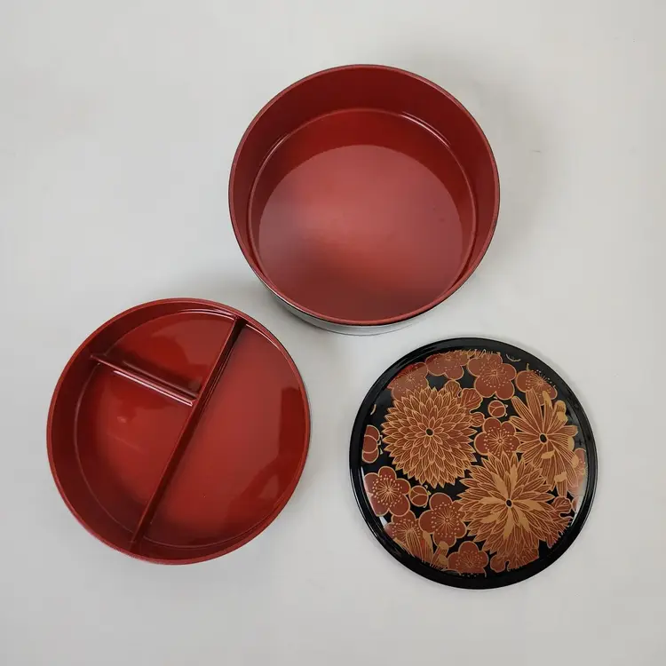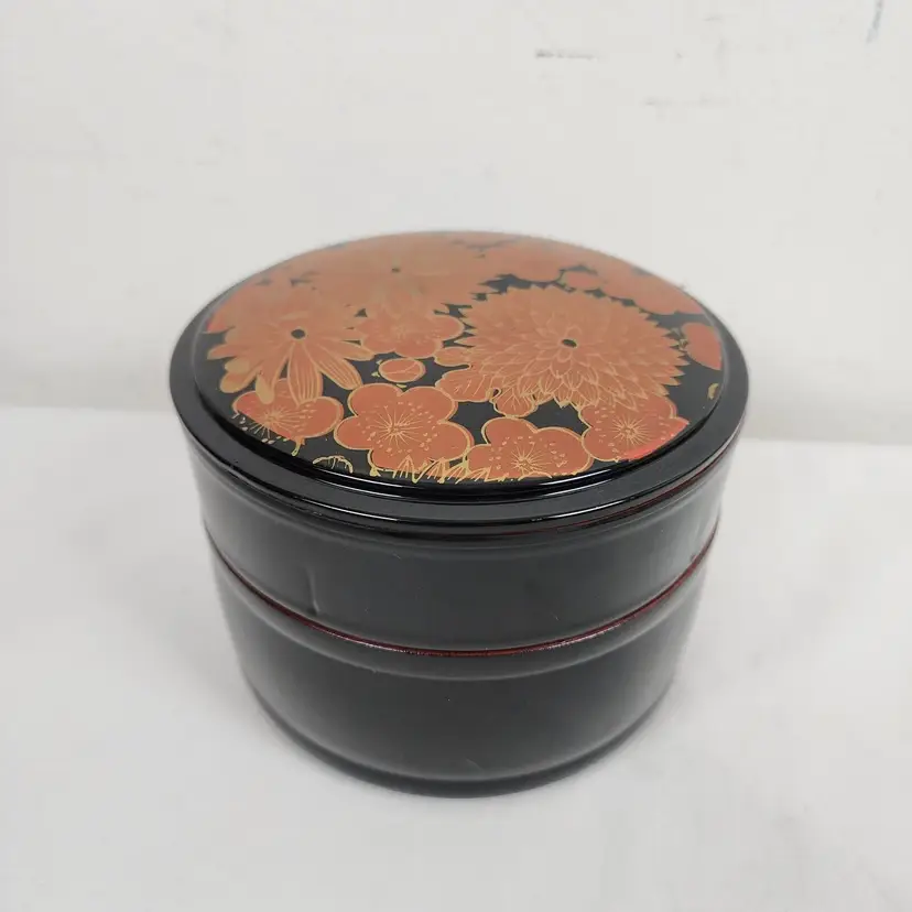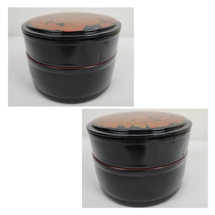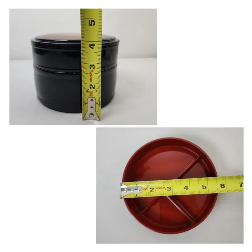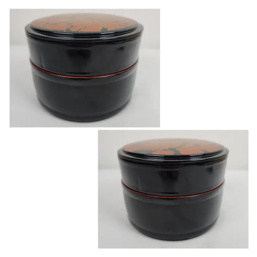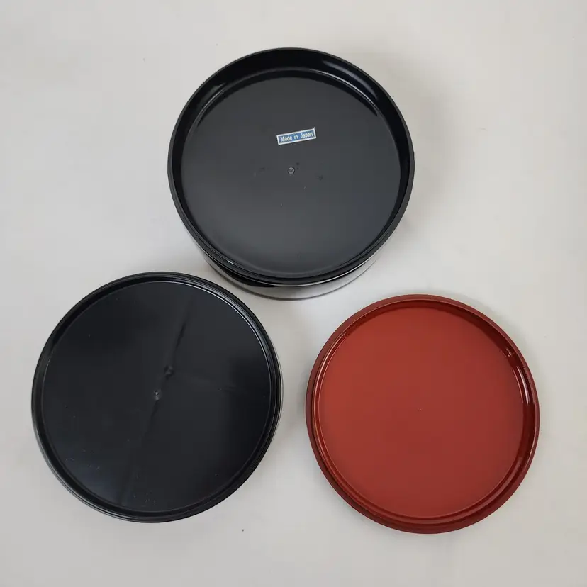 Provenance: Ownership History Not Available Color 2: Oxblood Color 3: Rust Style: Laquer Height: 4" Material: Plastic Country/Region of Manufacture: Japan Culture: Japanese Handmade: No Diameter: 5.5" Pieces: 3