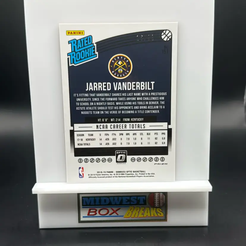 Jarred Vanderbilt Red Rated Rookie 16/99 2018-19 Donruss Optic Denver Nuggets MBBCRD