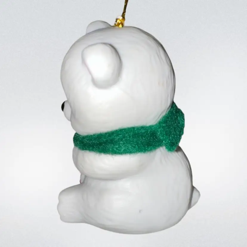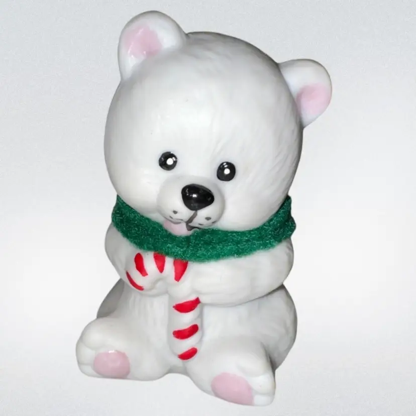 Jasco Vintage White Bear Bell Ornament Bisque porcelain Roughly 3 inches tall Fantastic condition and comes in original box