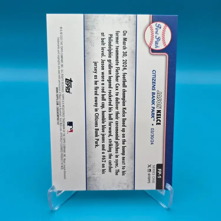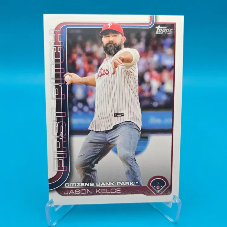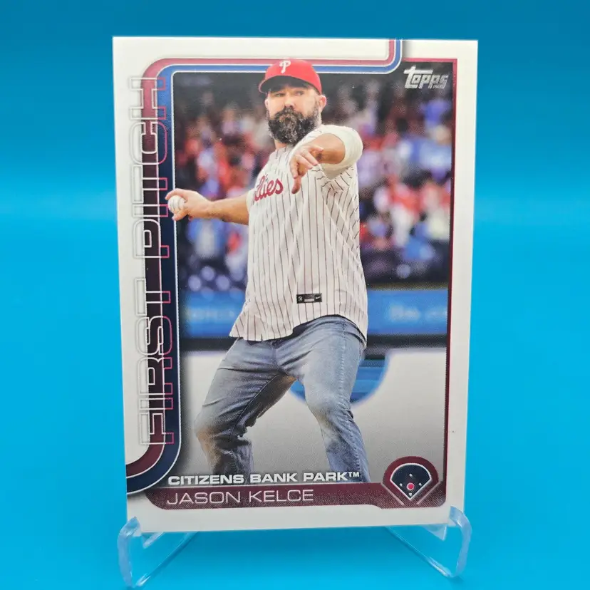 2025 Topps Series 1 First Pitch card of retired NFL star Jason Kelce at Citizens Bank Park. NM or better condition. Shipped PWE.