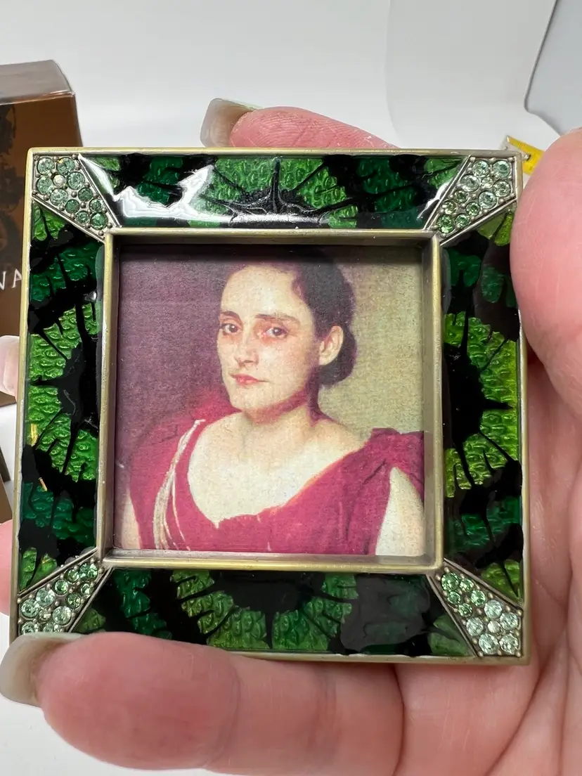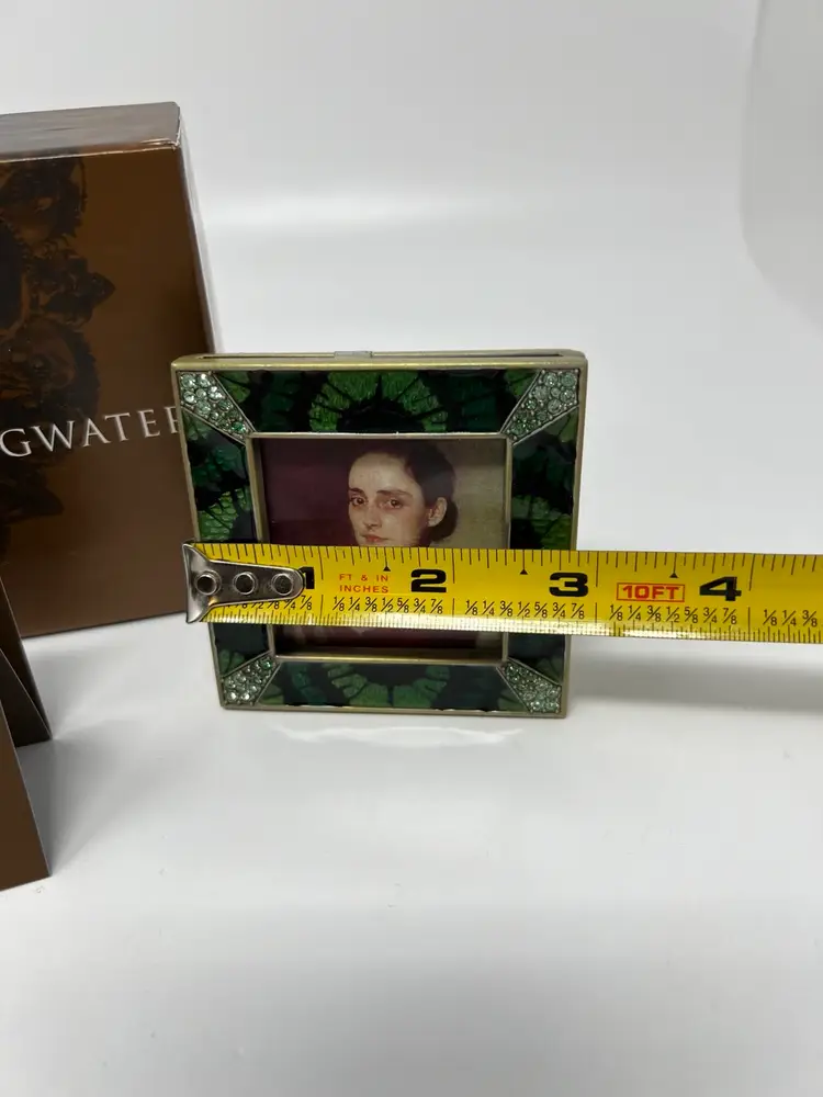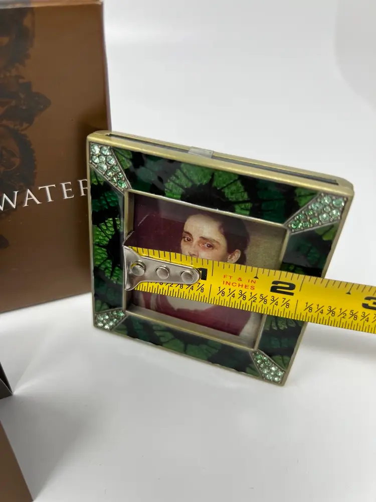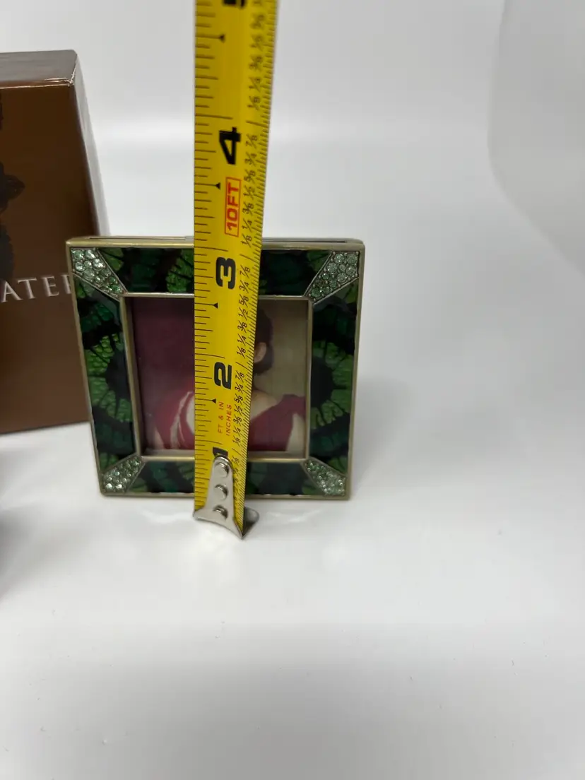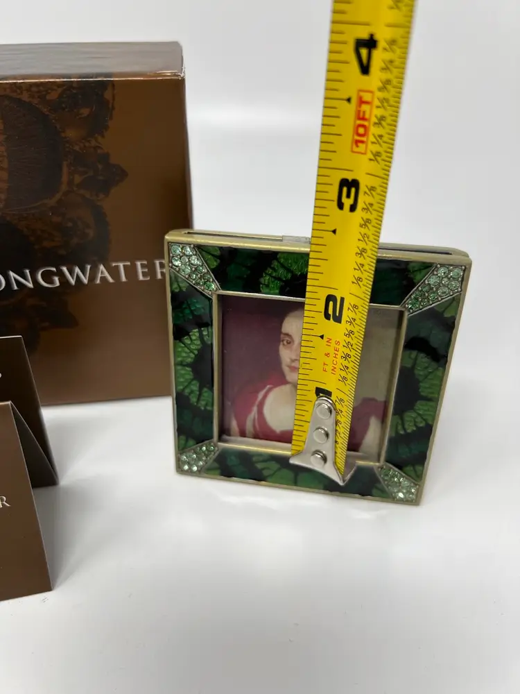 Add a touch of elegance to your living space with this stunning Jay Strongwater Green “Leland” Picture Frame from the jungle Collection. This exquisite frame is designed to showcase your favorite 2” x 2” photo in the best possible way. The frame features a beautiful mix of materials with a stunning art deco style and finish.