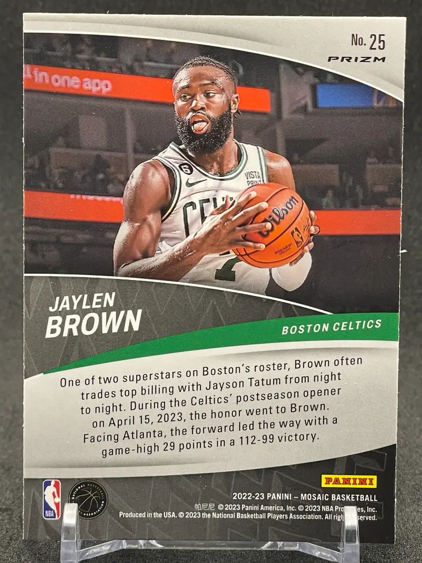 Item Description: Jaylen Brown 2022-23 Mosaic Elevate #25 Green Mosaic Prizm