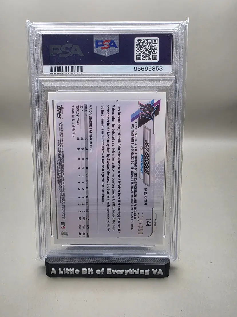 Jazz Chisholm 2021 TOPPS CHROME #144 MAGENTA SPECKLE REFRACTOR /350 PSA