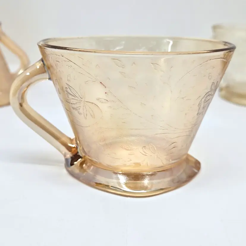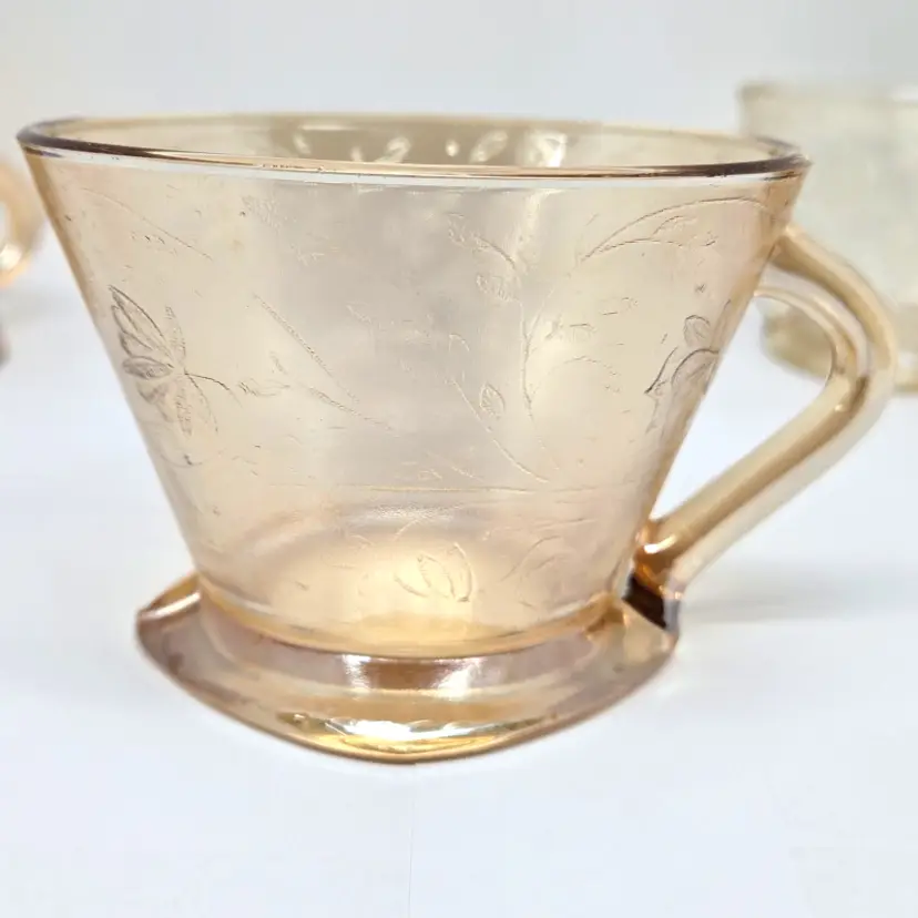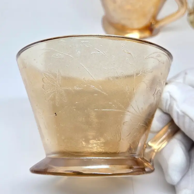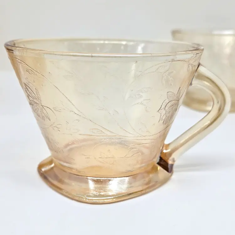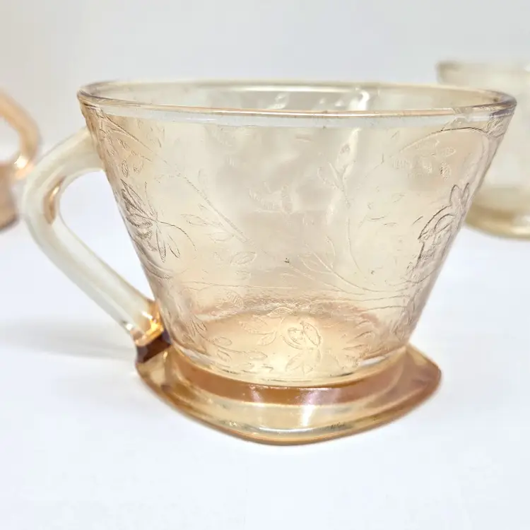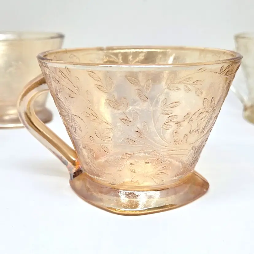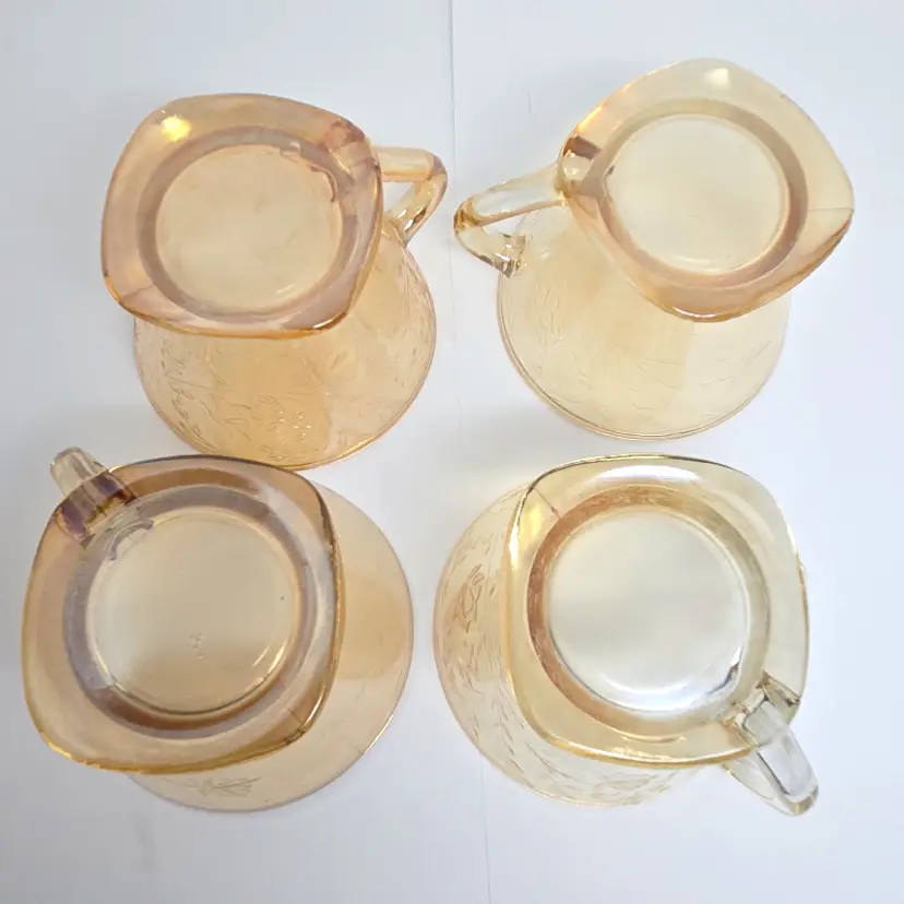 Each cup is about 4" x 3.5" x about 2.5" tall. Not all cups are the same in coloring which was normal in manufacturing at that time.