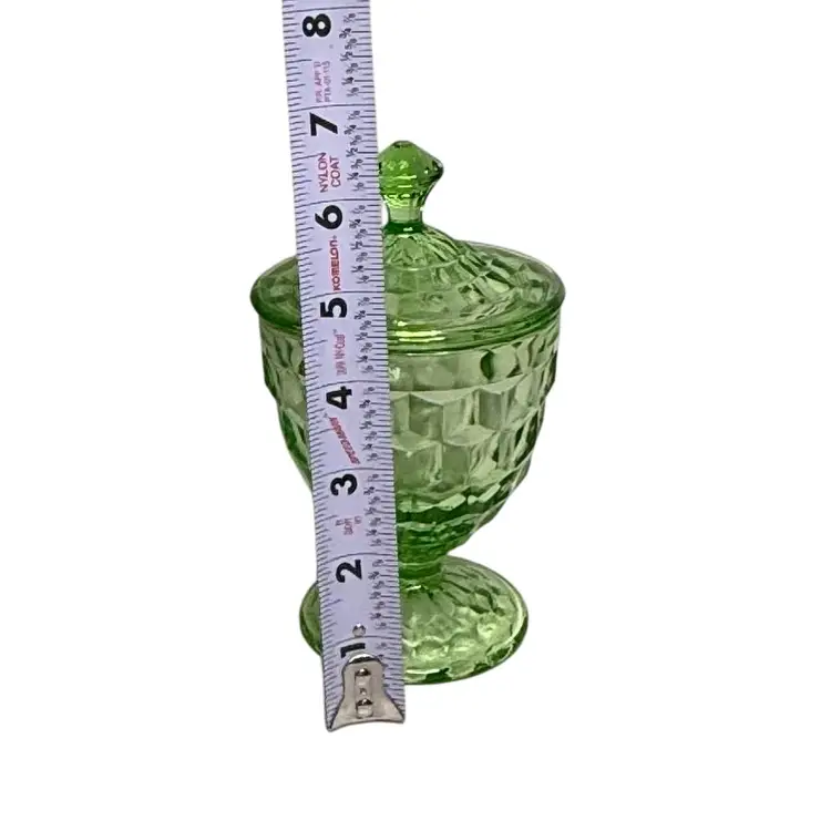 Condition: Excess spot of glass on the lid, see last picture.Typical air bubbles and seams in pressed glass. No other condition issues noted.