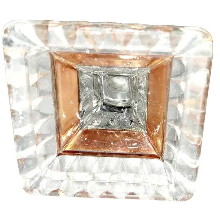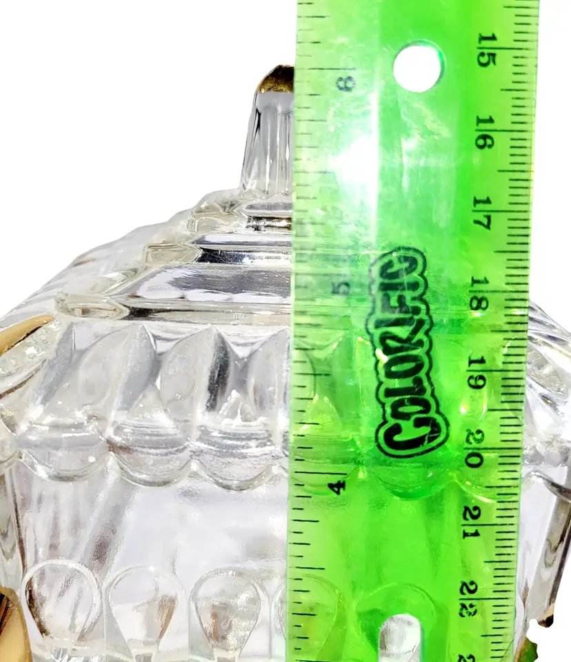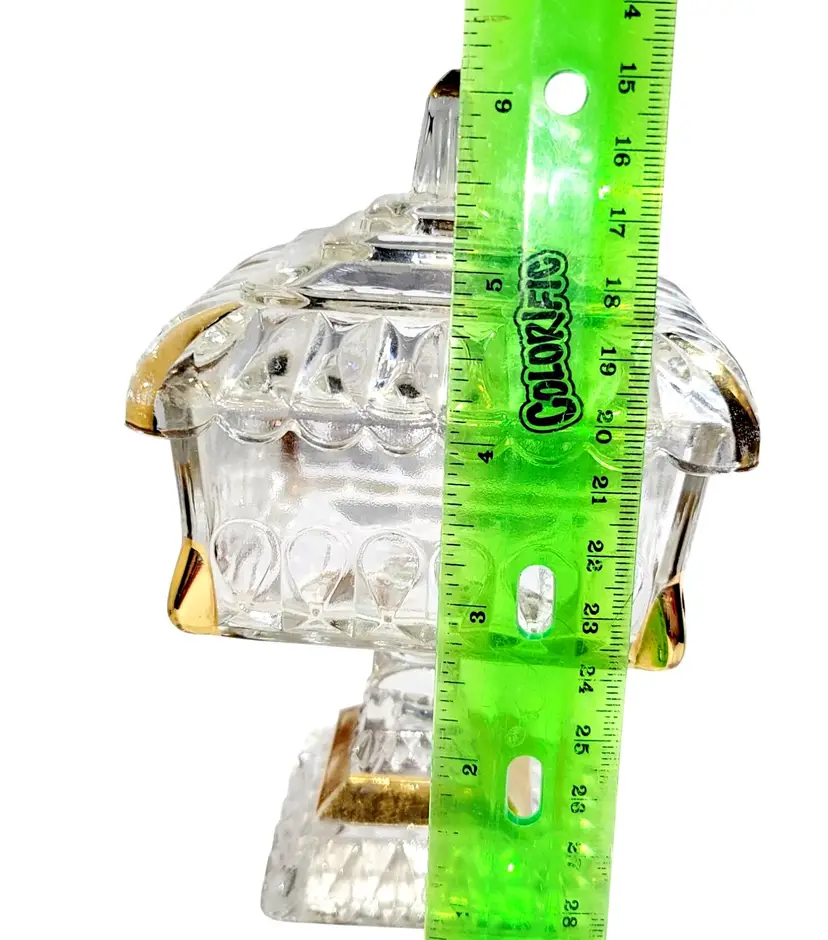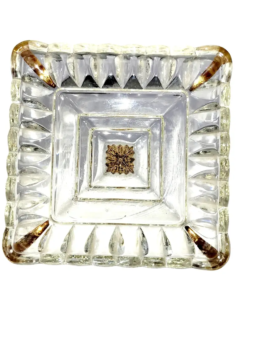 • Made of pressed glass with gold trim accents