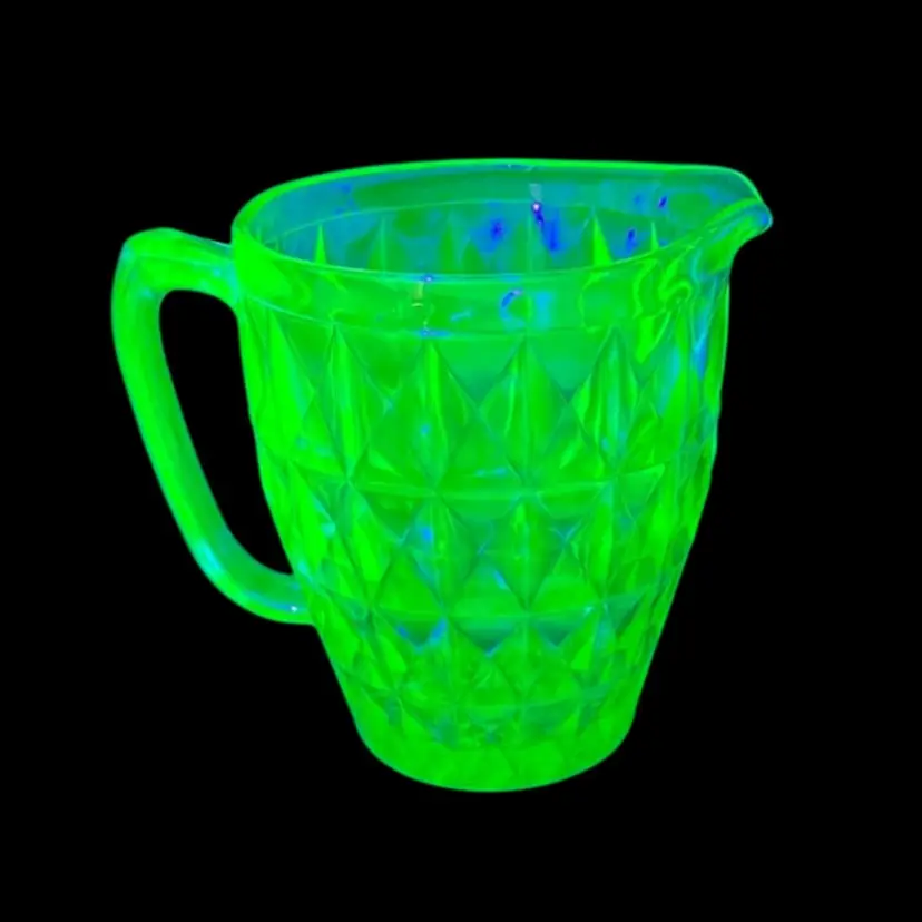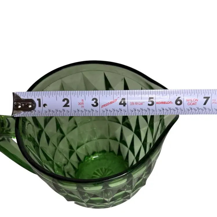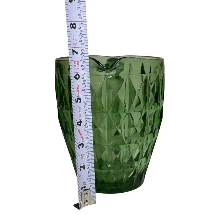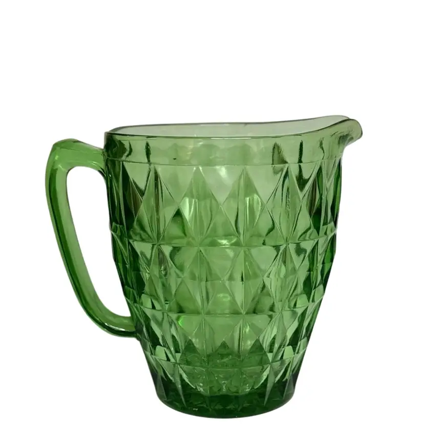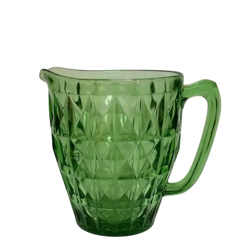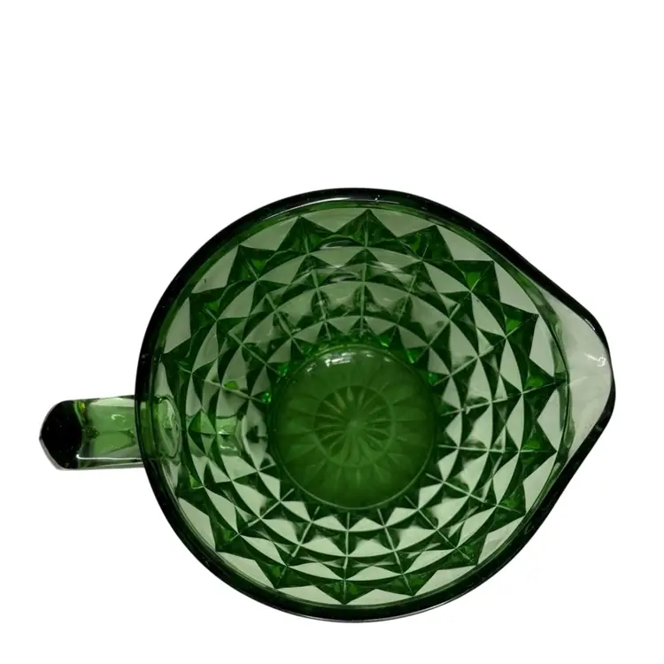 Jeannette Windsor Diamond 52oz Green uranium Depression Glass Pitcher.