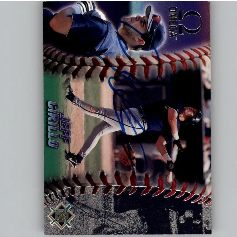 Authentic 1998 Pacific Omega baseball card featuring Jeff Cirillo, adorned with his signature in blue ink. A prized collectible for fans of Jeff Cirillo and autograph card enthusiasts. Your purchase supports Signatures For Soldiers in helping homeless and disabled veterans.