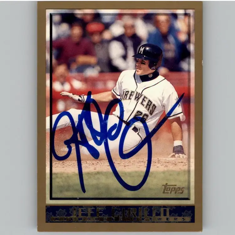 Authentic Topps baseball card featuring Jeff Cirillo of the Milwaukee Brewers, adorned with his signature in bold blue ink. A prized collectible for Brewers fans and autograph card enthusiasts. Your purchase supports Signatures For Soldiers in helping homeless and disabled veterans.