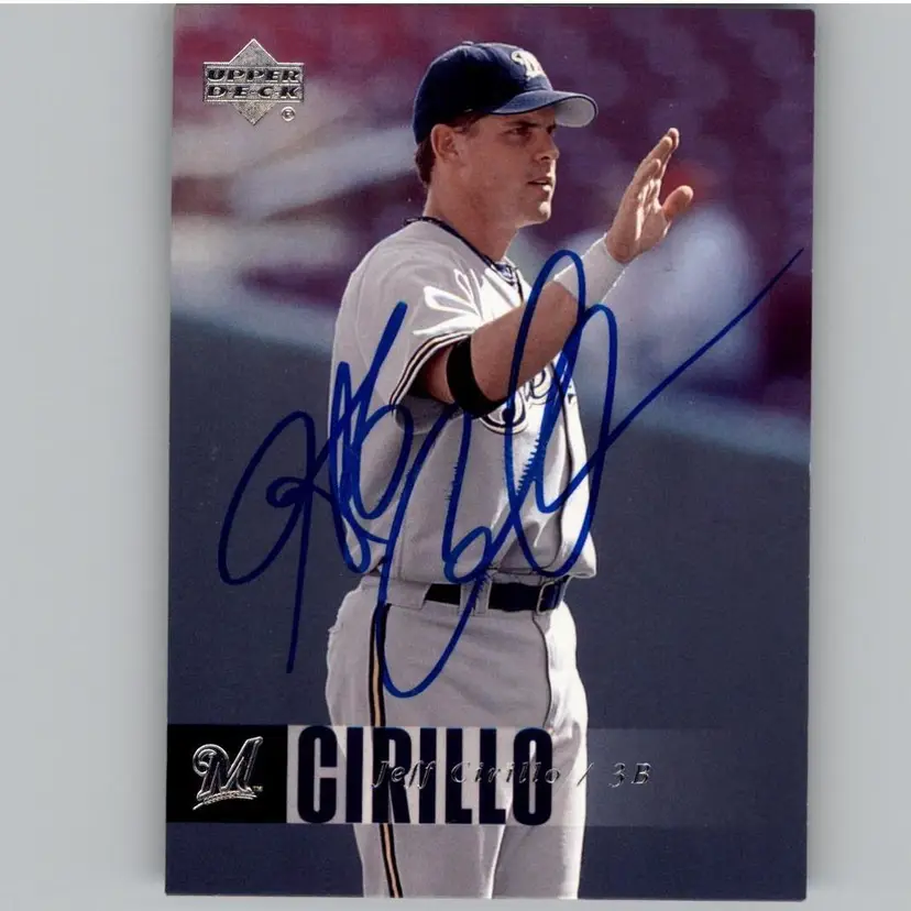 Authentic Upper Deck baseball card featuring Jeff Cirillo of the Milwaukee Brewers, signed boldly in blue ink. A great addition for Brewers fans and autograph collectors. Your purchase supports Signatures For Soldiers in their mission to help homeless and disabled veterans.