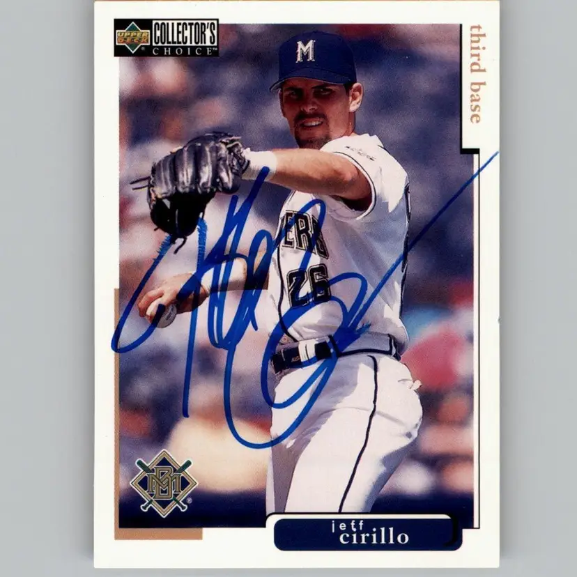 Authentic Upper Deck Collector's Choice baseball card featuring Jeff Cirillo of the Milwaukee Brewers, signed boldly in blue ink. A great addition for Brewers fans and autograph collectors. Your purchase supports Signatures For Soldiers in aiding homeless and disabled veterans.