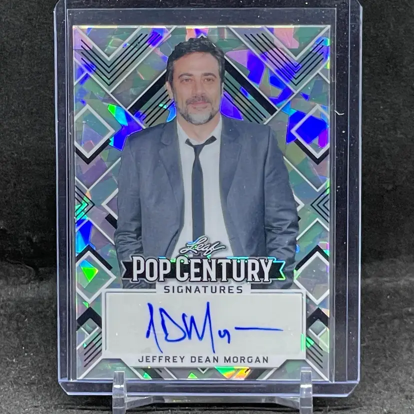 Add this Jeffrey Dean Morgan autograph card from the Leaf Pop Century Signatures series to your collection. Perfect for fans of his iconic roles and TV memorabilia enthusiasts!