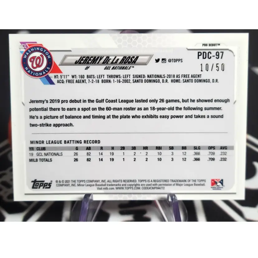 Jeremy De La Rosa – 2021 Topps Chrome Pro Debut Gold Refractor /50 Team: GCL Nationals (Prospect)