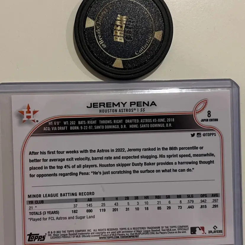 Add a rare Pena rookie card to your collection, from 2022 Topps Japan Edition $1 shipping via PWE (stacks with other listings)