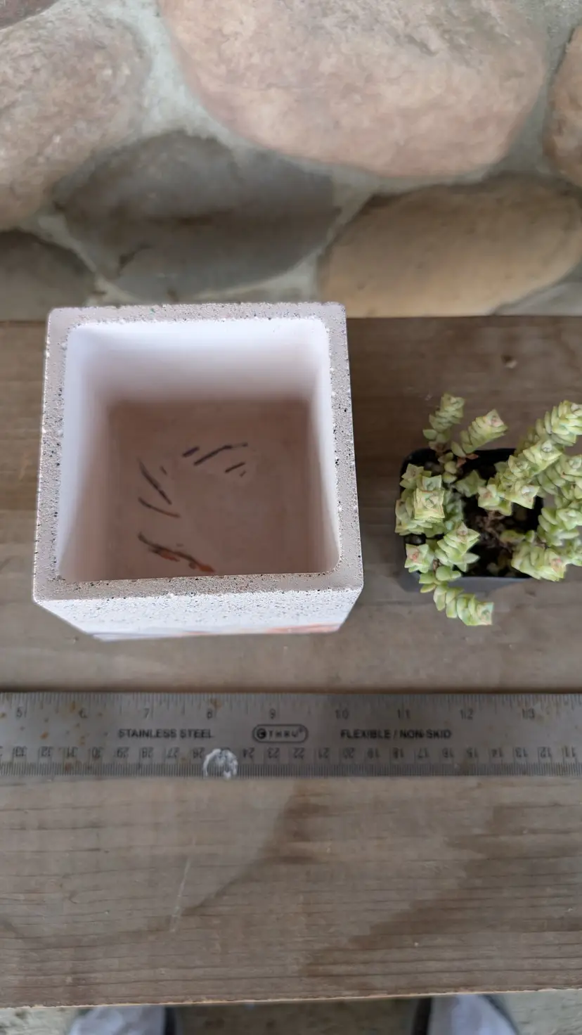 Drainage can be added at no charge, shown with a 2" nursery pot for size reference (not included). Shipping overages will be refunded.