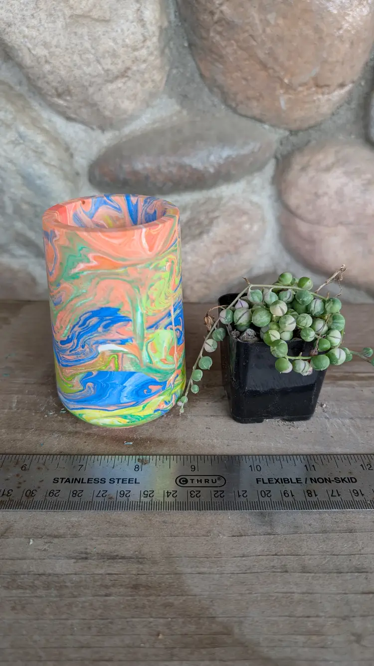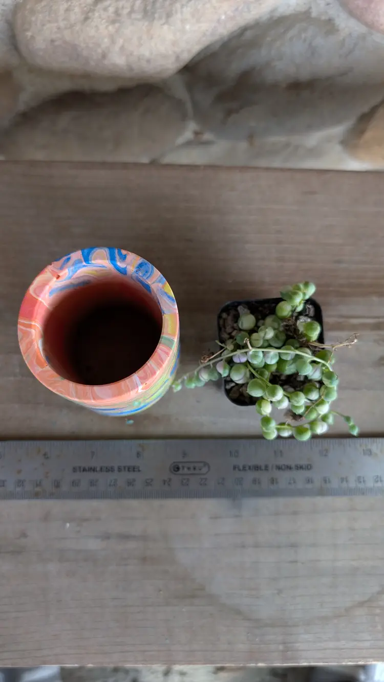 Drainage can be added at no charge, shown with a 2" nursery pot for size reference (not included). Shipping overages will be refunded.