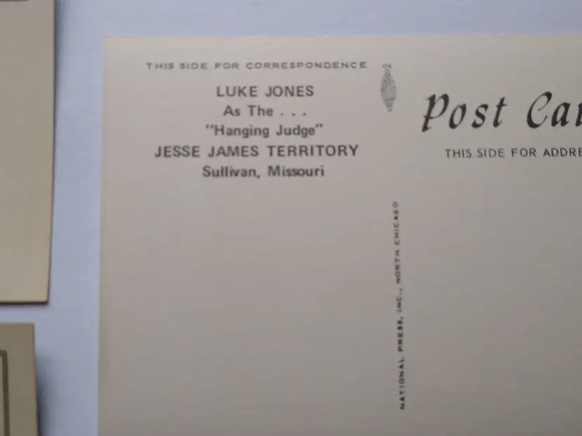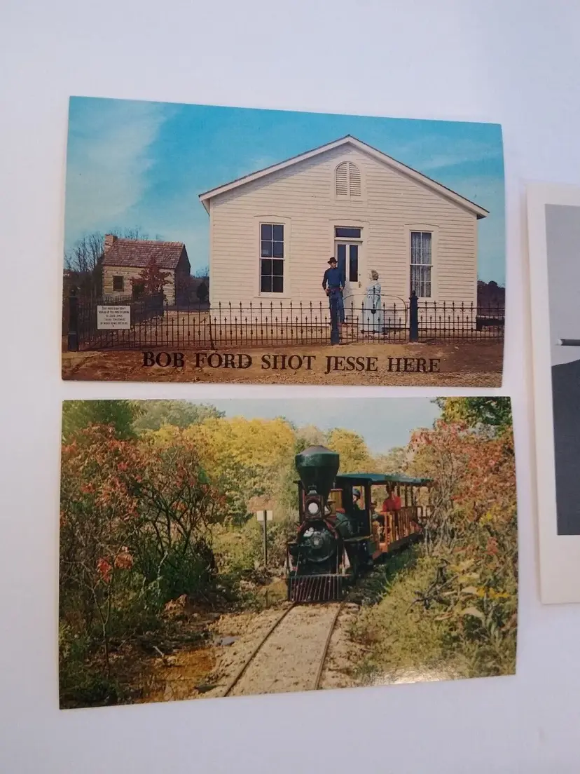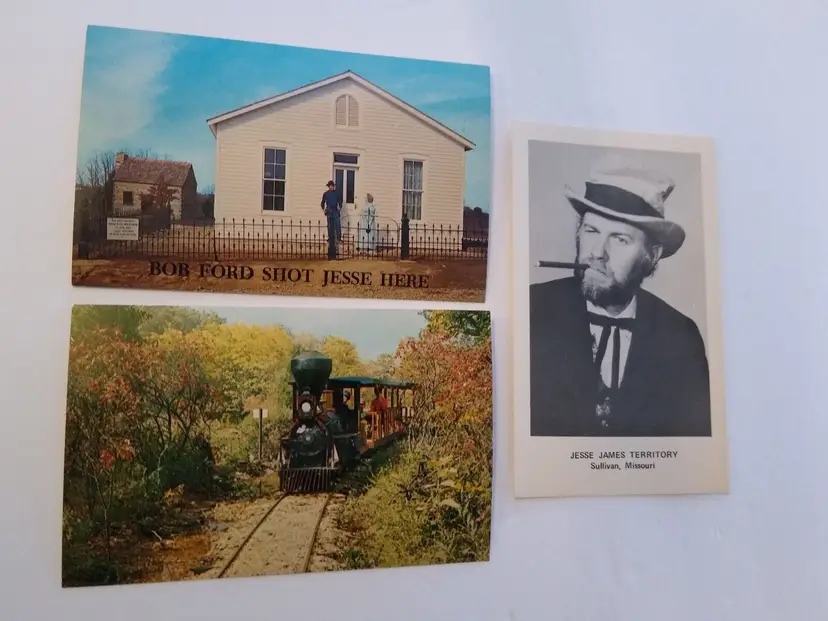 Size: Standard (5.5 x 3.5 in) Custom Bundle: No Continent: North America Region: Missouri Country: USA Type: Linen Postcard Year Manufactured: 1970 Number of Items in Set: 3 Original/Licensed Reprint: Original Occasion: Sayings & Quotes City: Sullivan Time Period Manufactured: 1967-1975 Unit of Sale: Mixed Lot Era: Photochrome (1939-Now) Artist: Unknown Country/Region of Manufacture: United States Material: Paper Theme: Attractions, Theme Park, Jesse James, Jesse James Territory, Train, Railroad, Advertising, Amusement Parks, Cowboys & Western Features: Vintage Subject: Jesse James Postage Condition: Unposted Brand/Publisher: St. Louis Postcard Co. Franchise: Unknown