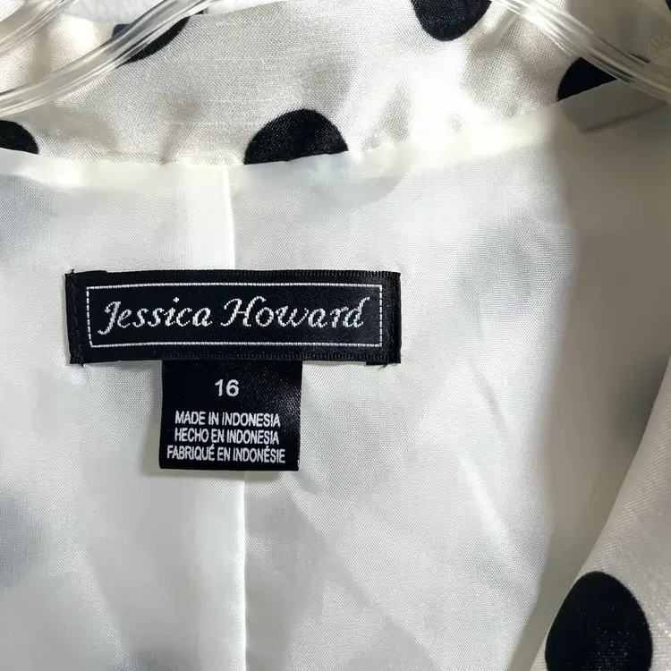 Jessica Howard Dress Size 16 White Polka Dot Retro Swing Rockabilly Pin Up Condition: Gently used - like new. No stains, rips or defects that I could find. Check out the photos for more details. Color: White with Black polka dots Features: Top half is lined. Sleeveless, side zip, matching belt, lightweight, and overall fun dress. Machine washable 100% polyester. Size: 16 Measurements taken with item laid flat