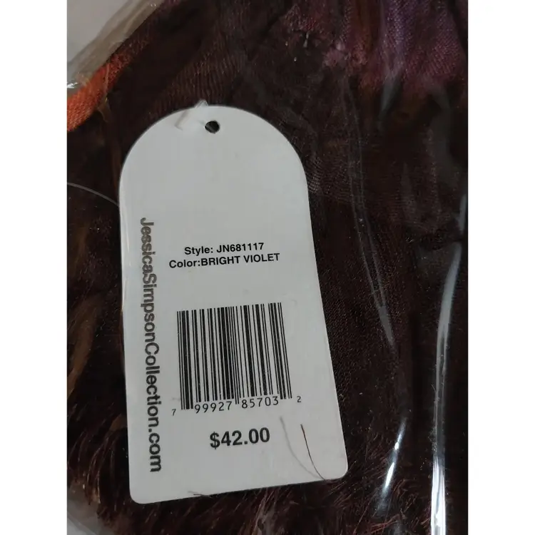 The wrap/scarf is 100% Acrylic and Comes with Clear Acrylic Scarf Ring. New In PKG/NWT!!! It was a SAMPLE from her Collection 18 line before the collab Collection 18 tags were added to the scarves!! BUT...the collab with her and Collection 18, NEVER HAPPENED!! These are from that, and were never marketed or sold!! Making them very rare!!! The orig owner who's estate these came from, worked FOR Collection 18 for 40 years!! They obviously were given or allowed to purchase samples, as she had MANY, most still NIP, NWT!