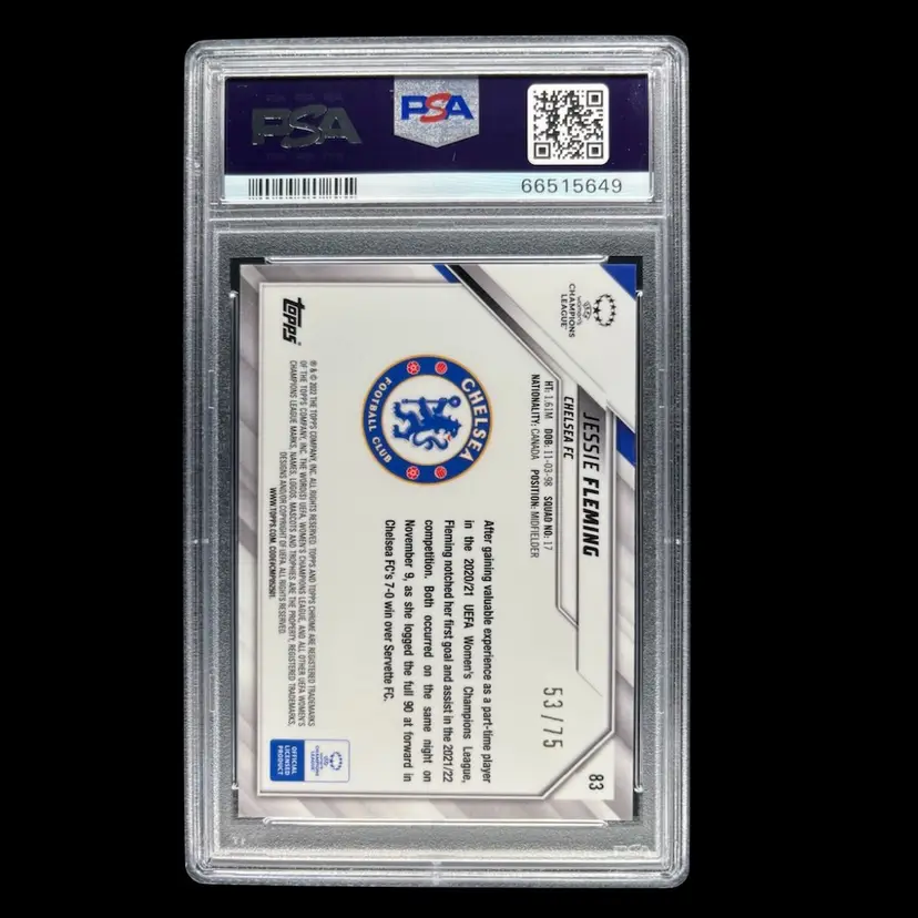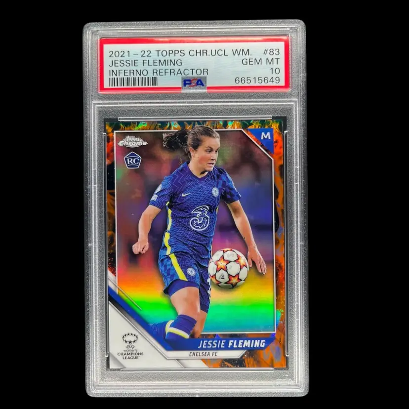 Jessie Fleming 2021/22 Topps Chrome UWCL Inferno /75 PSA 10 Soccer Card