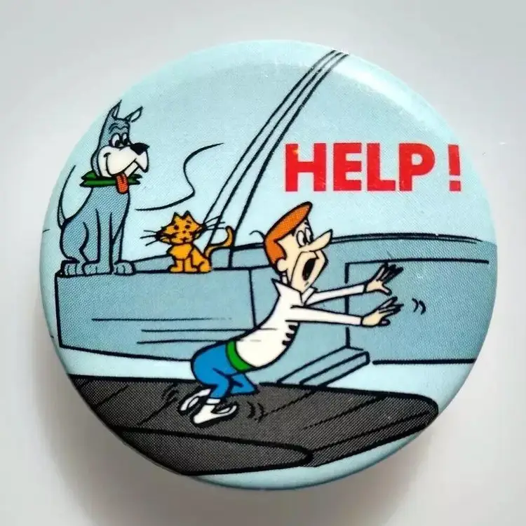 Vintage original licensed official The Jetsons pinback button badge. Marked "Hanna Barbera Productions. 1983" and "Button Up." around the rim. Amazing condition. 1.5" size.