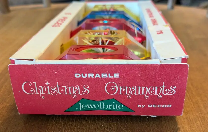 Each ornament in this set is an original piece from the Jewelbrite collection, produced in the United States in the 1960s. They are small in size, measuring 3 inches in length and 2 inches in width, making them perfect for creating a unique and personalized holiday display. Whether you're a collector of vintage ornaments or just looking for a special addition to your Christmas decor, these Jewelbrite Diorama Decor ornaments are sure to impress.
