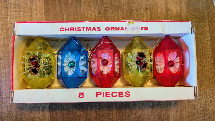 Add some vintage charm to your Christmas decor with this set of 5 Jewelbrite Diorama Decor ornaments. These durable plastic ornaments feature a hexagon shape and a multicolor solid pattern that will bring a touch of mid-century modern style to your holiday display. Hang them on your tree or use them as decorative accents on your mantel or in your home.