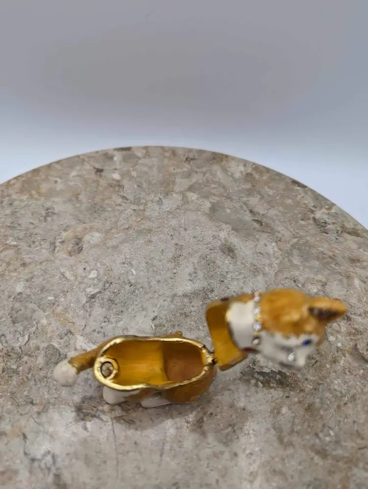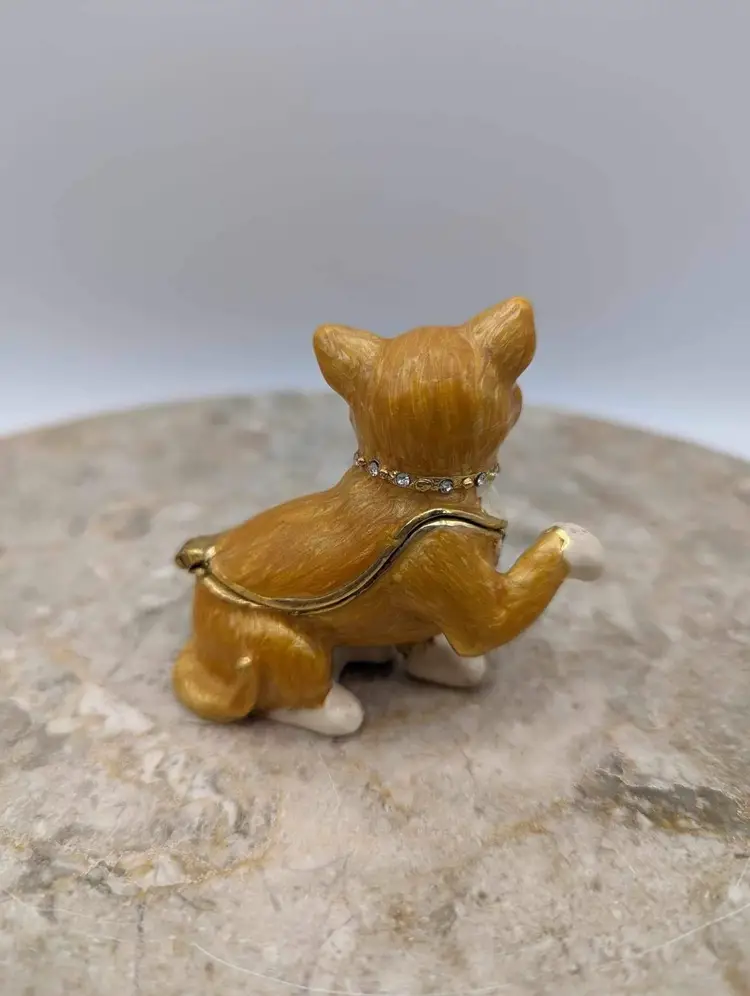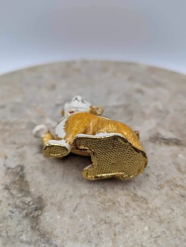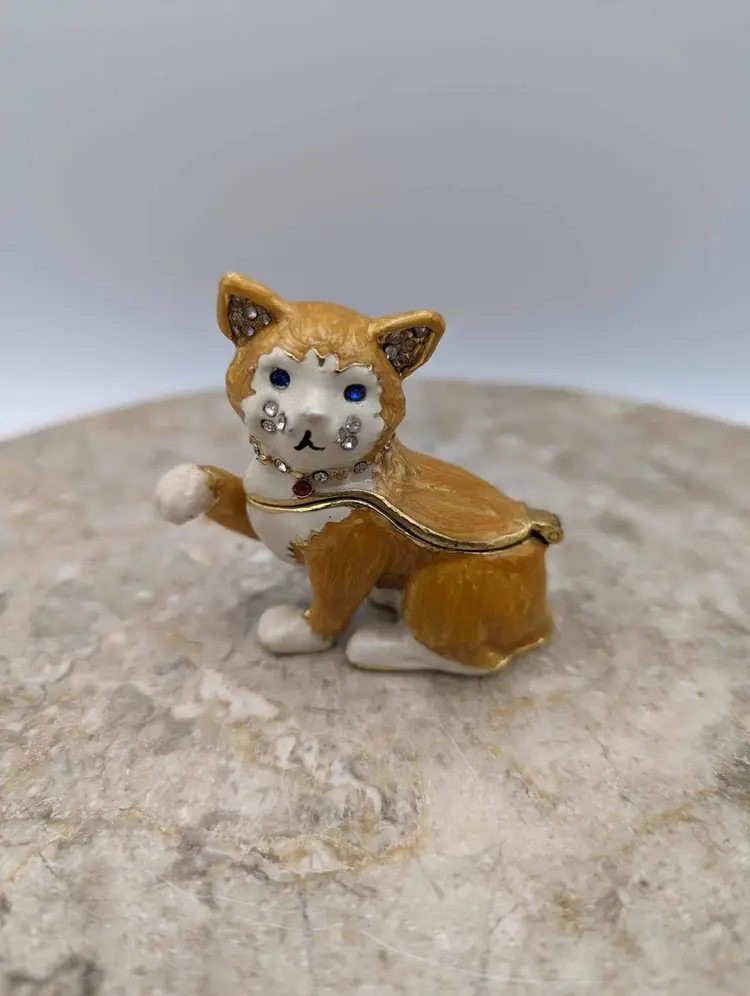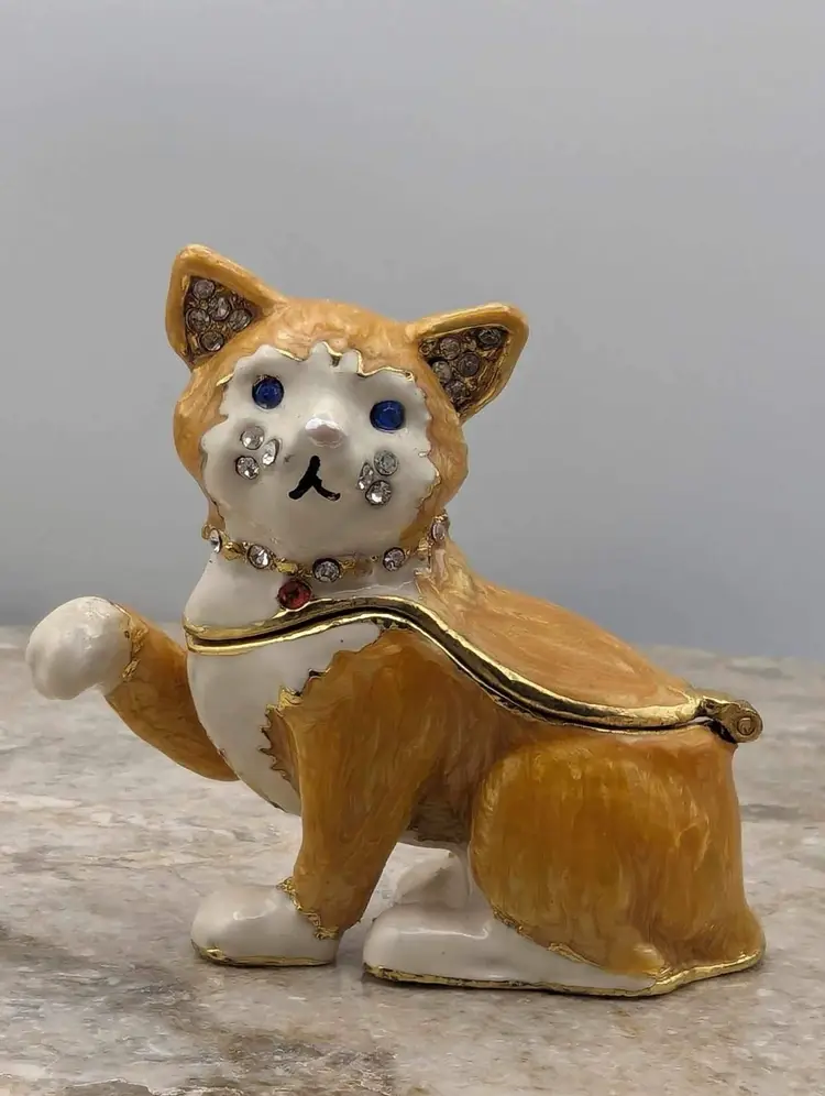 This exquisite trinket box is a must-have for any cat lover. The box is adorned with intricate jeweled and enameled details that make it a stunning addition to any collection. It measures 2 1/2 inches by 3 inches and comes with a magnetic closure to ensure that your treasures stay safe and secure.
