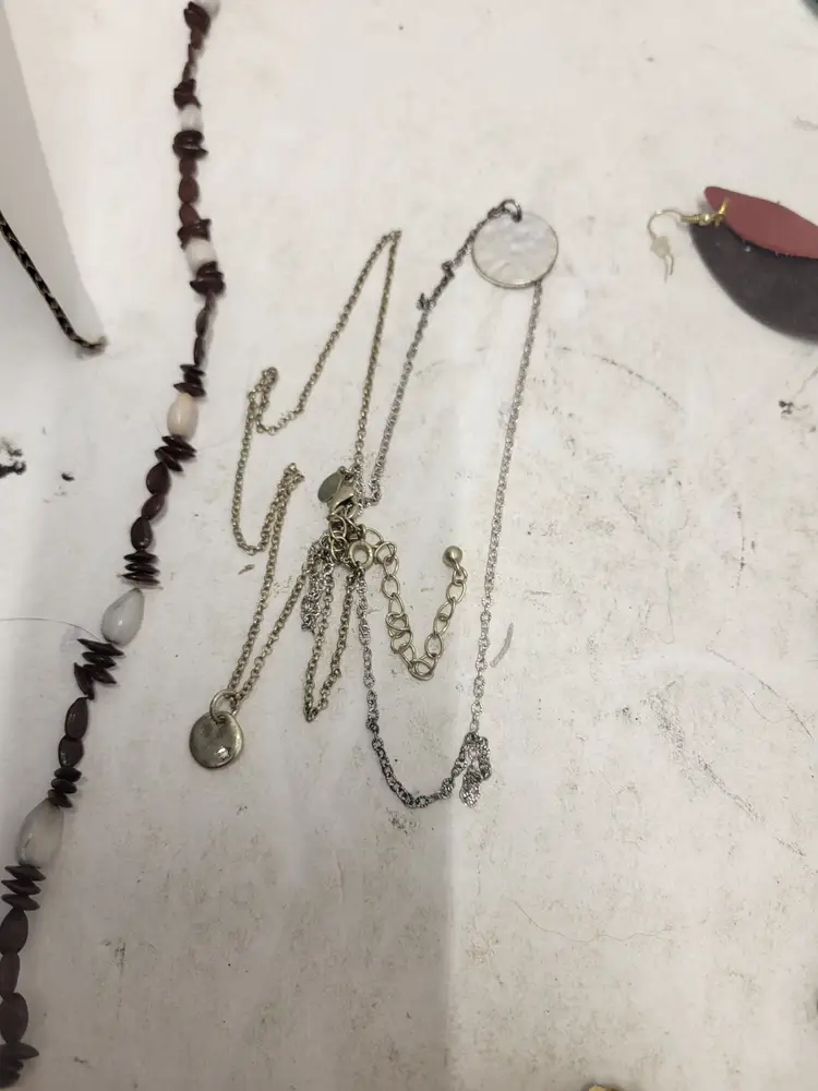 Random lot of jewelry. It does include some odds and ends. The silver color necklace is knotted up